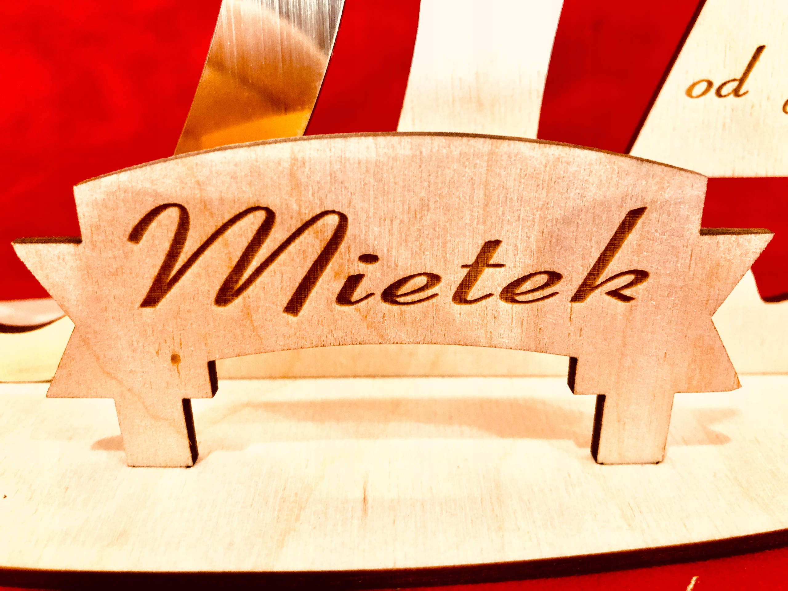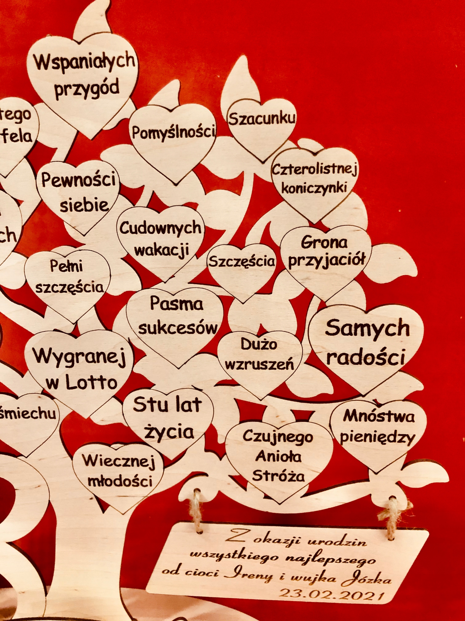 Красиво вырезанная фанера и гравированное дерево с пожеланиями имениннику.