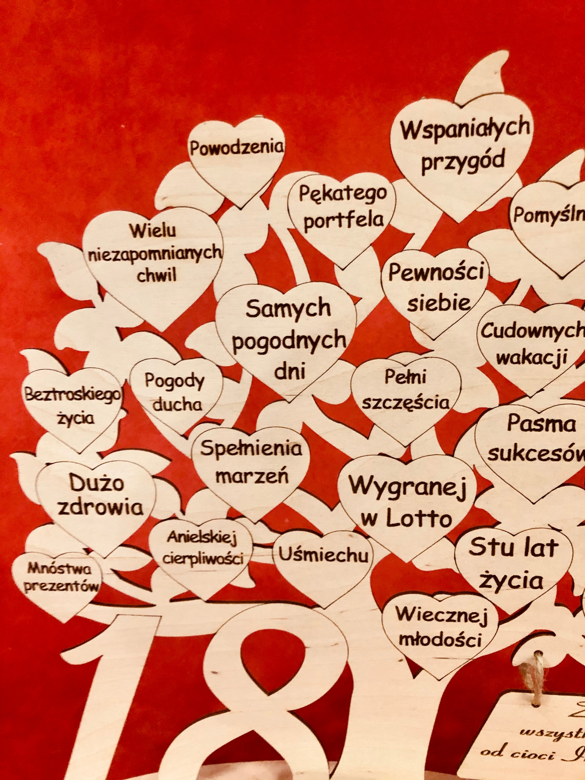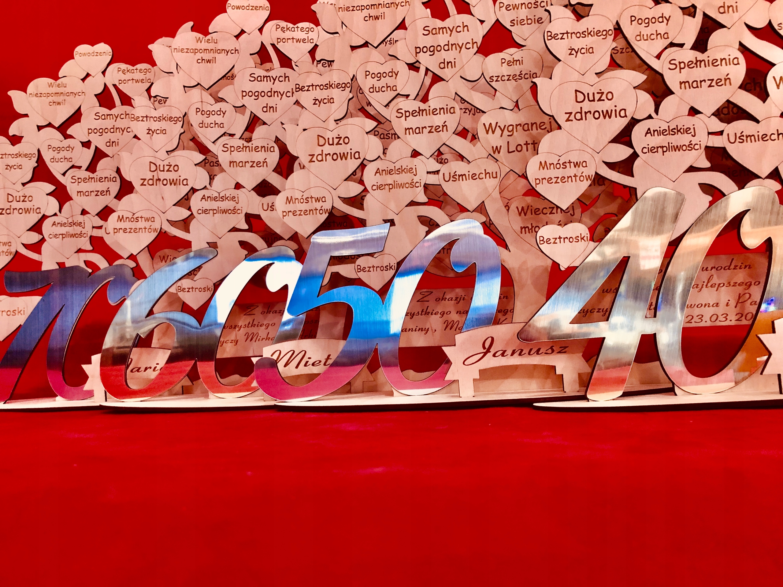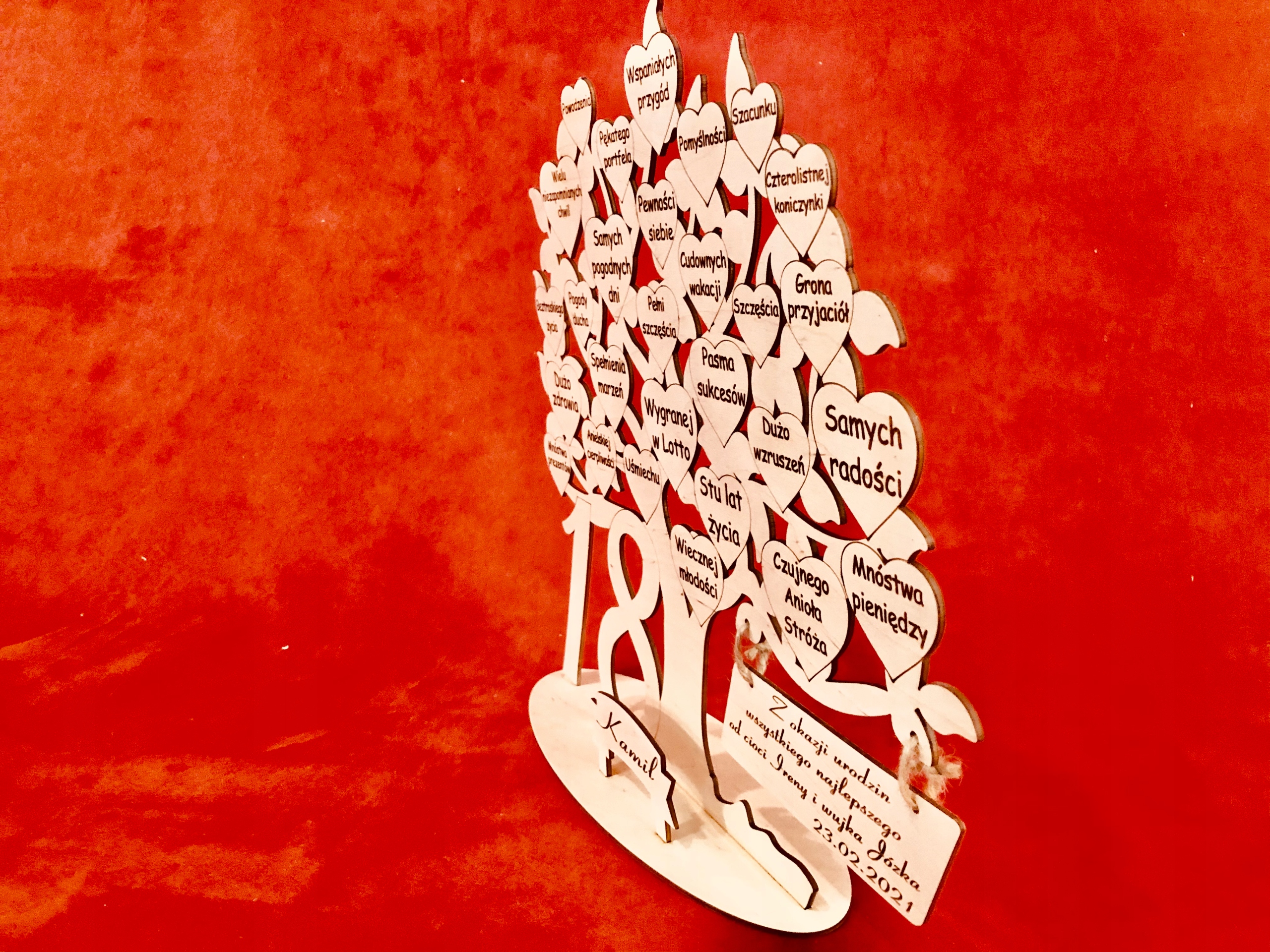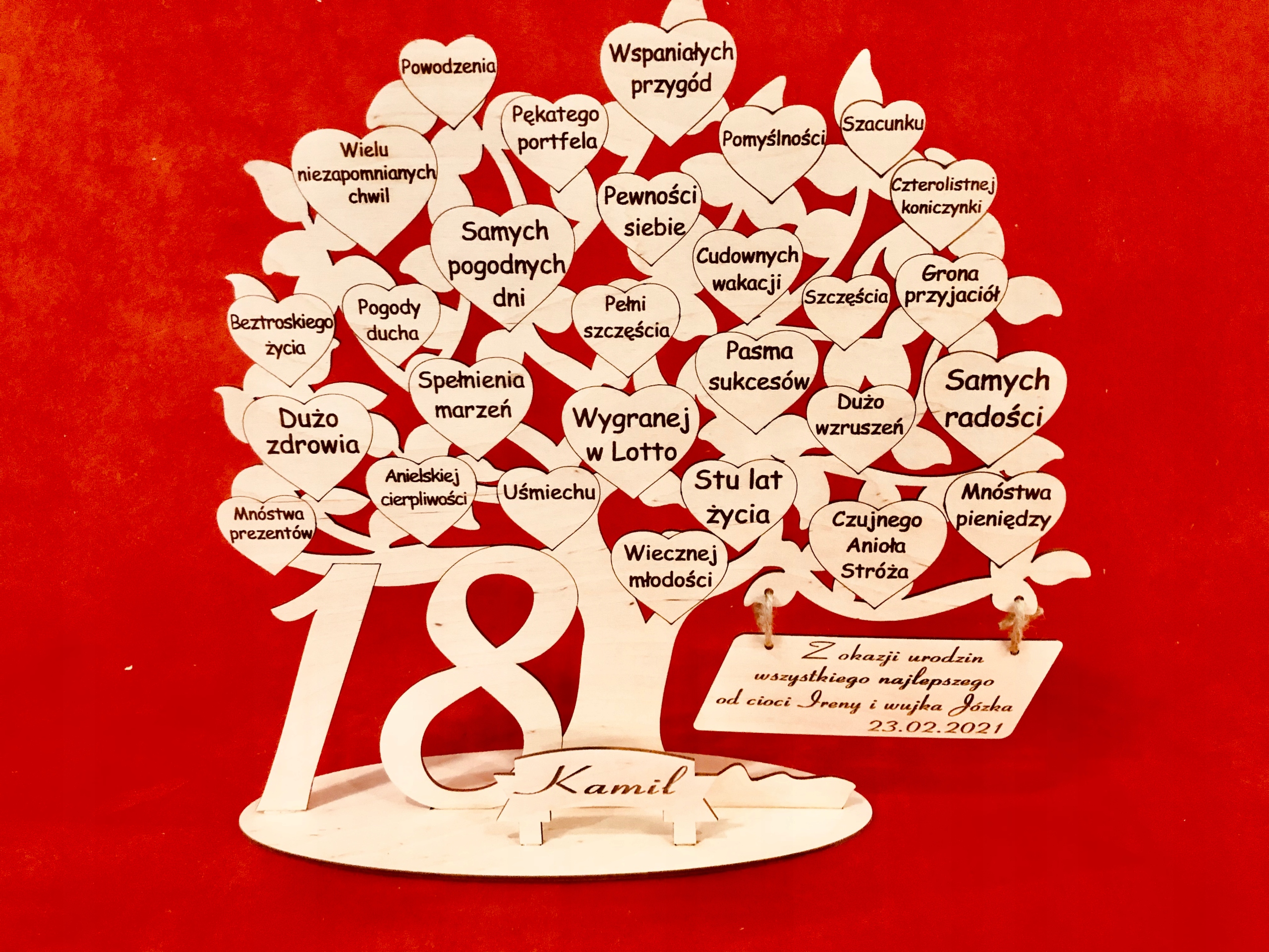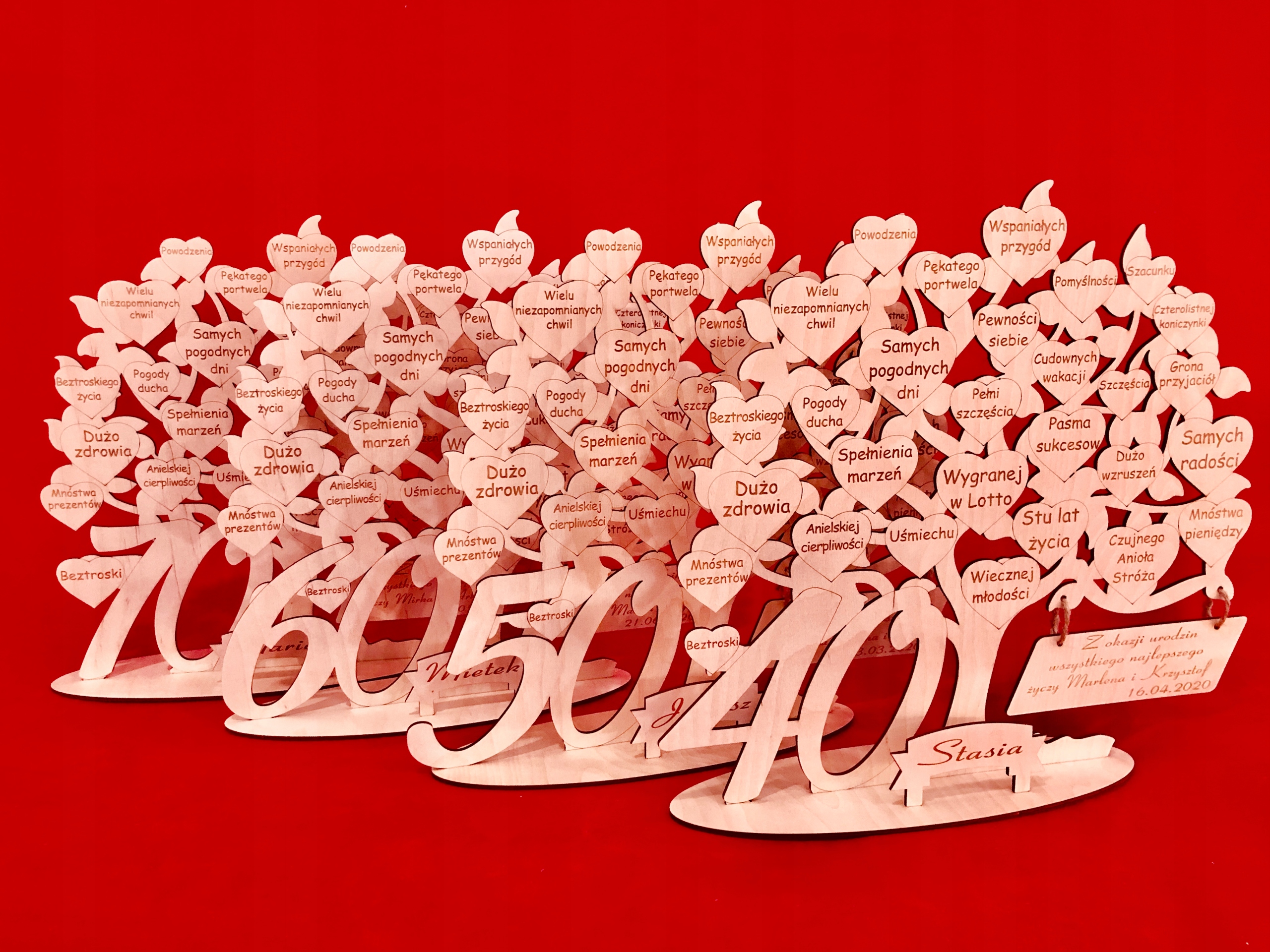 Подарок на день рождения в виде гравированного дерева с пожеланиями и цифрами из ламината с золотой или серебряной гравировкой, выполненного нашей студией оригинальной гравировки GRAWERNIADDZ.