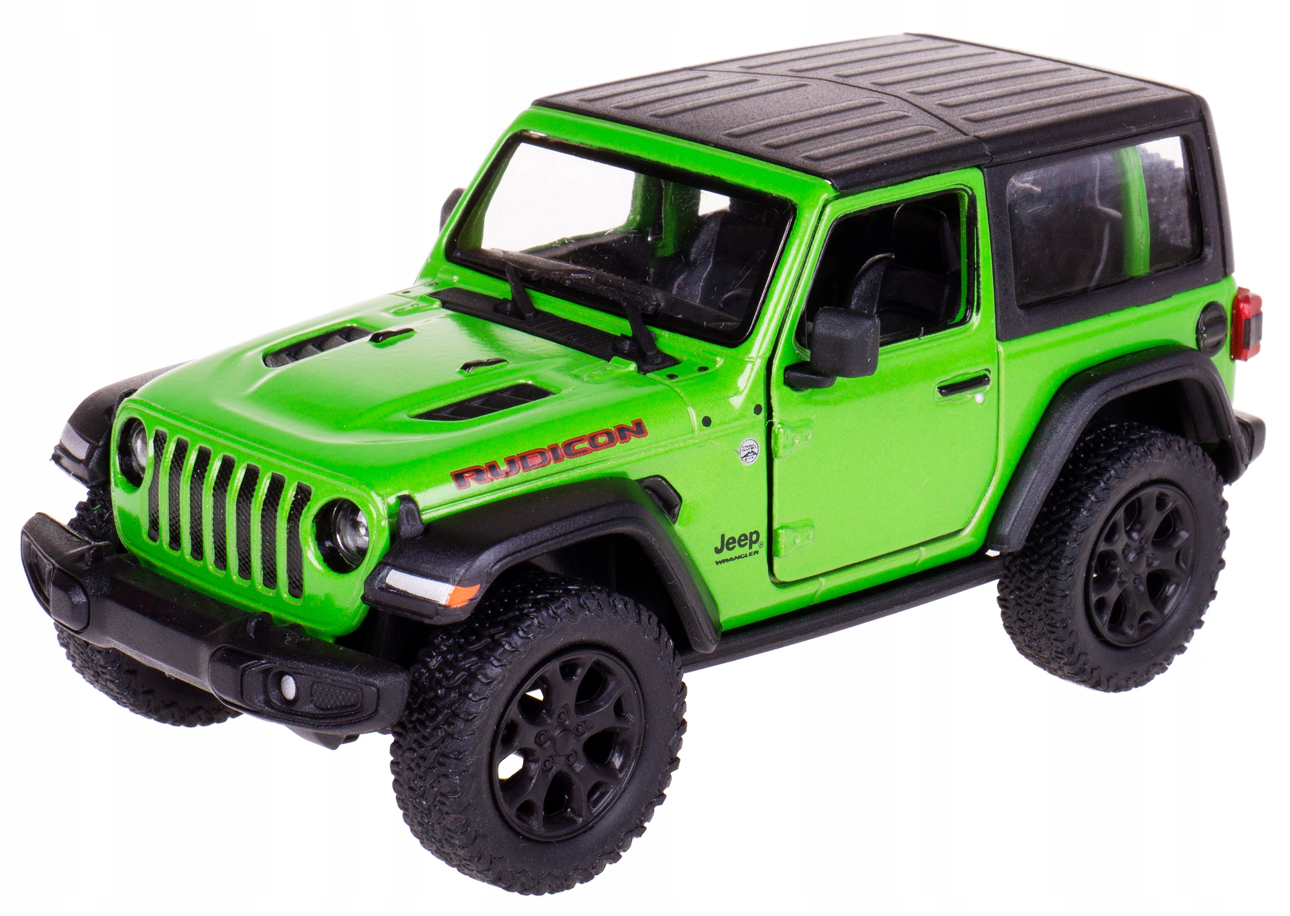 Модель JEEP WRANGLER RUBICON (HARD TOP) 2018 года из металла и пластика с инерционным приводом в масштабе 1:34.