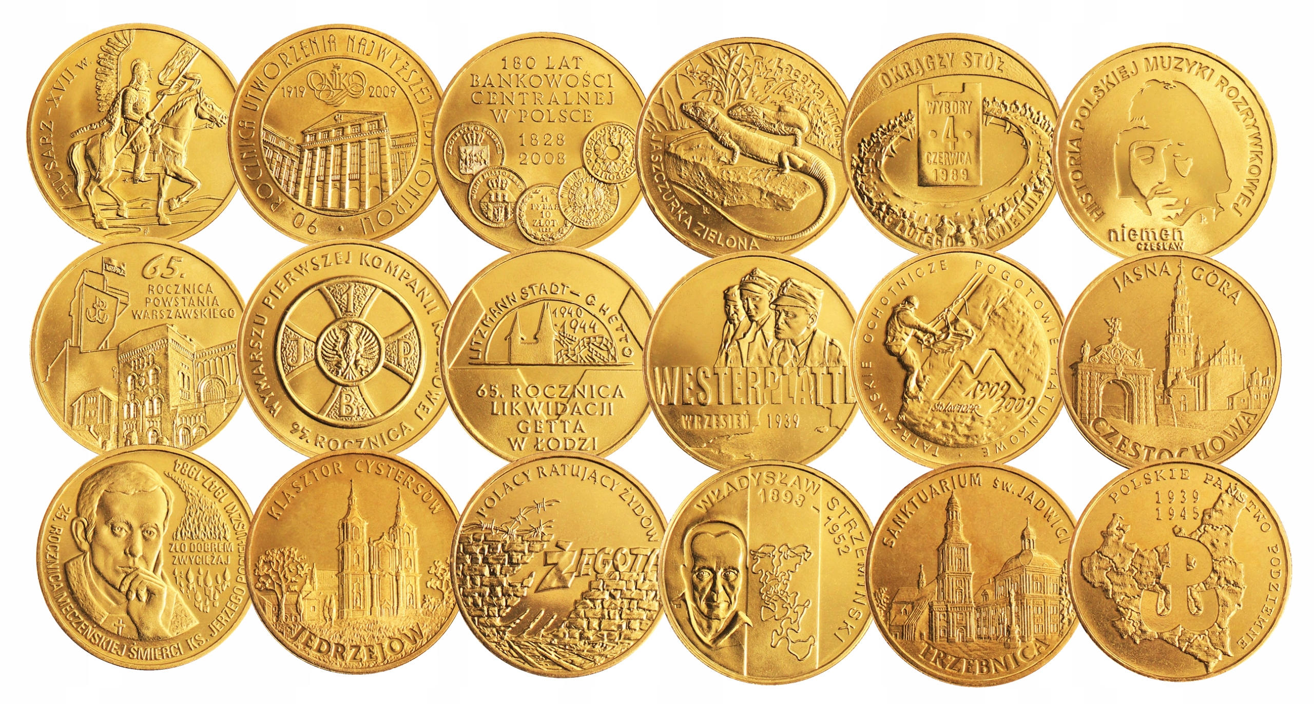 Набор из 18 монет номиналом 2 злотых GN выпуска 2009 года.