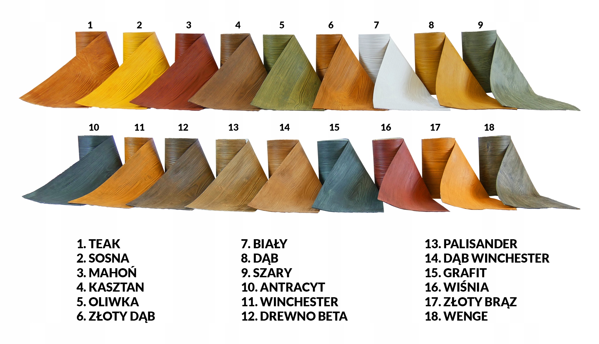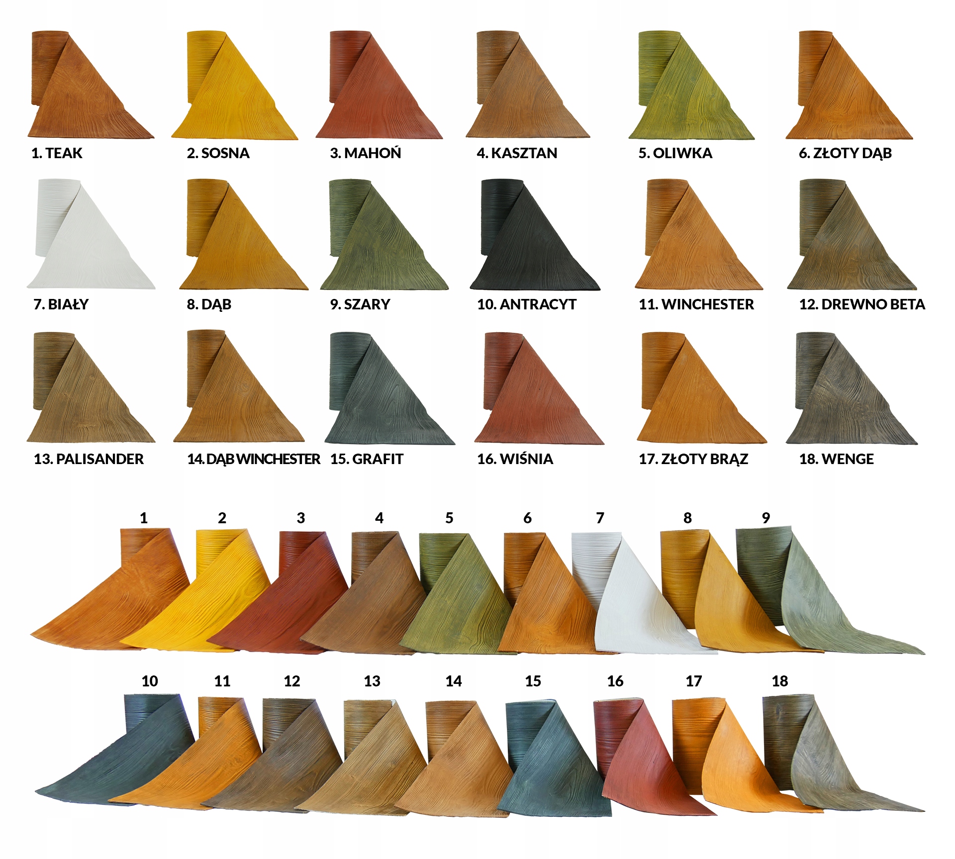 ОБРАЗЦЫ ГИБКИХ ФАСАДНЫХ ДОСОК - ВЕСЬ КОМПЛЕКТ - 18 ЦВЕТОВ