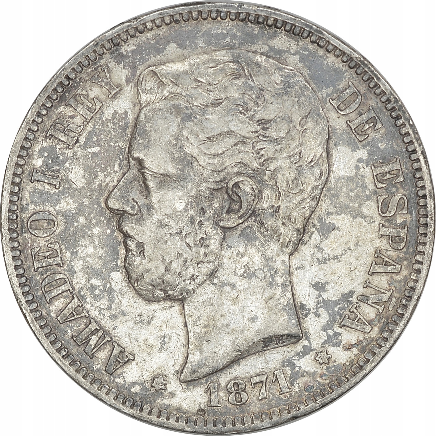 18.ІСПАНІЯ, АМАДЕО, 5 ПЕСЕТ 1871 (71) СД М