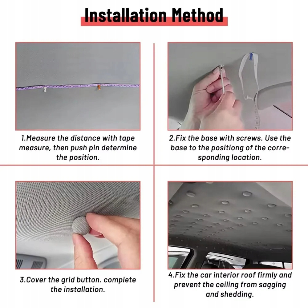 - ✔ Простая сборка - сборка проста, просто выберите место, чтобы установить заклепку и прикрутить ее отверткой, сохраняя расстояние 10-15 см, в зависимости от того, сколько материал хедлайнера вешает прочно