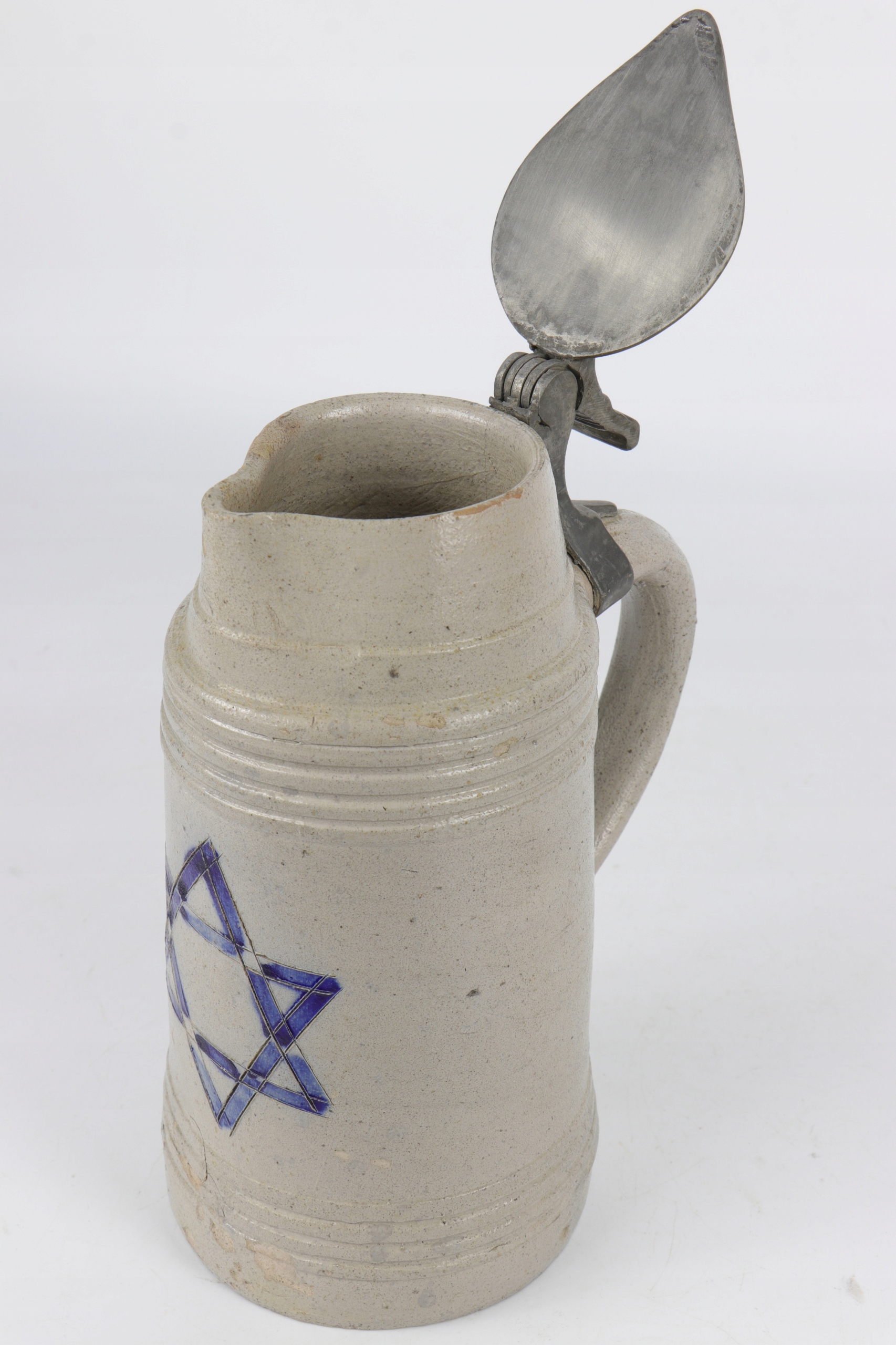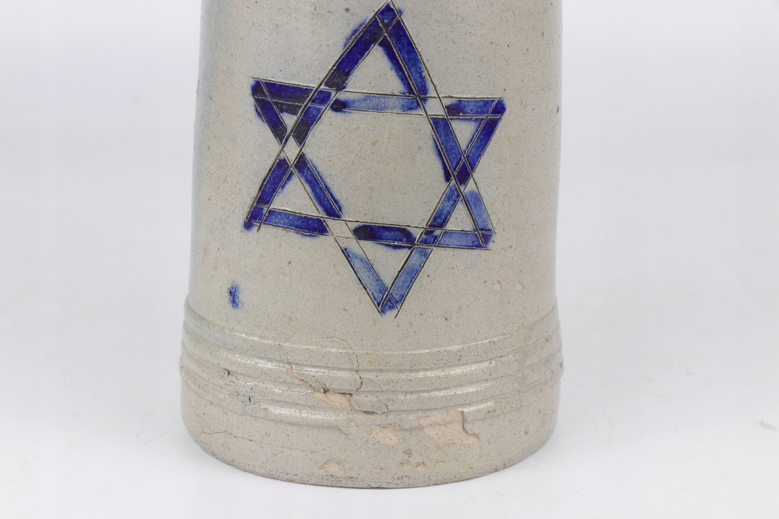 Очень старая коллекционная старинная кружка из светлой регенсбургской керамики. Кружка на животе с выгравированной Звездой Давида Иудаики. Коллекционная кружка.