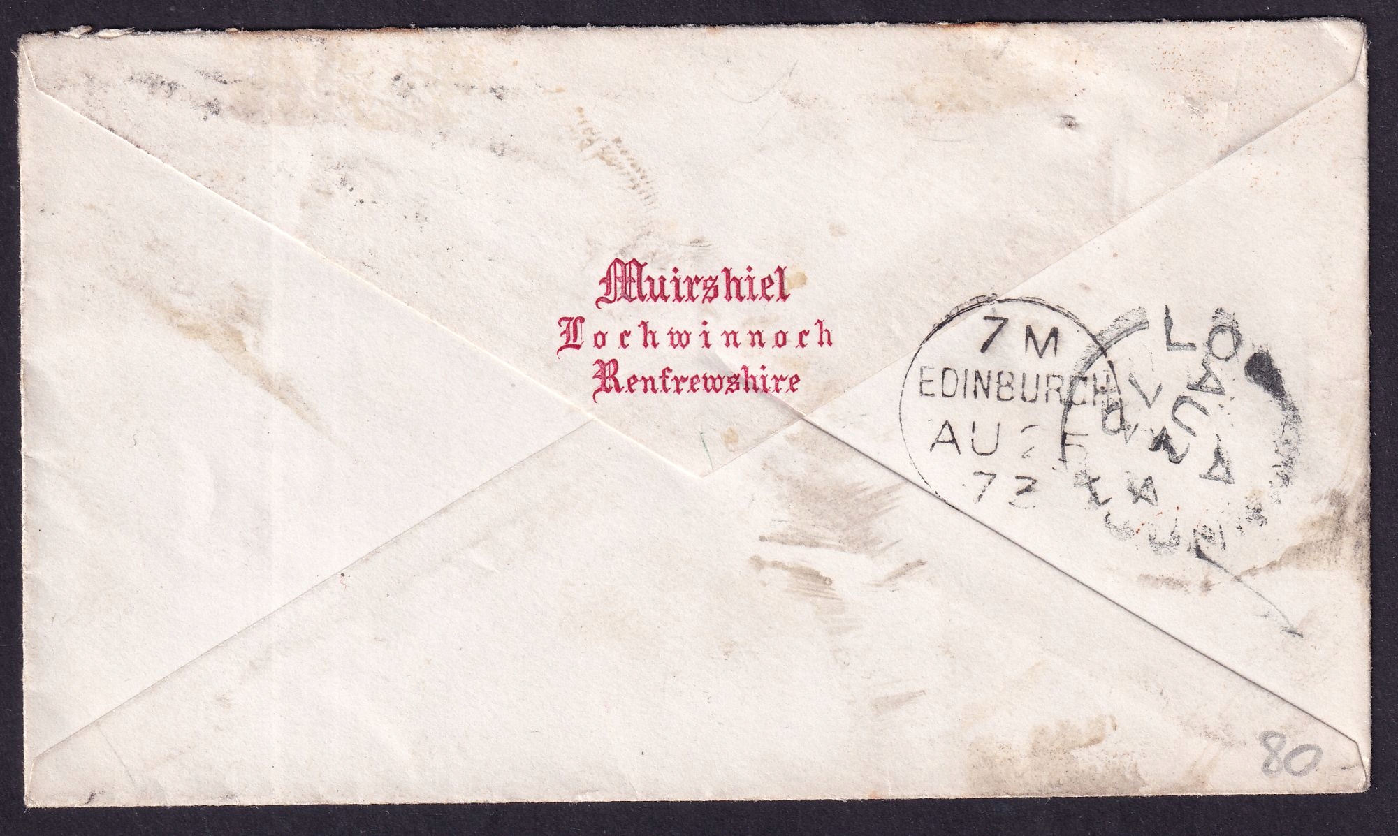 Конверт в офисном состоянии с маркой Англия № 5, отправленный из Глазго в Эдинбург