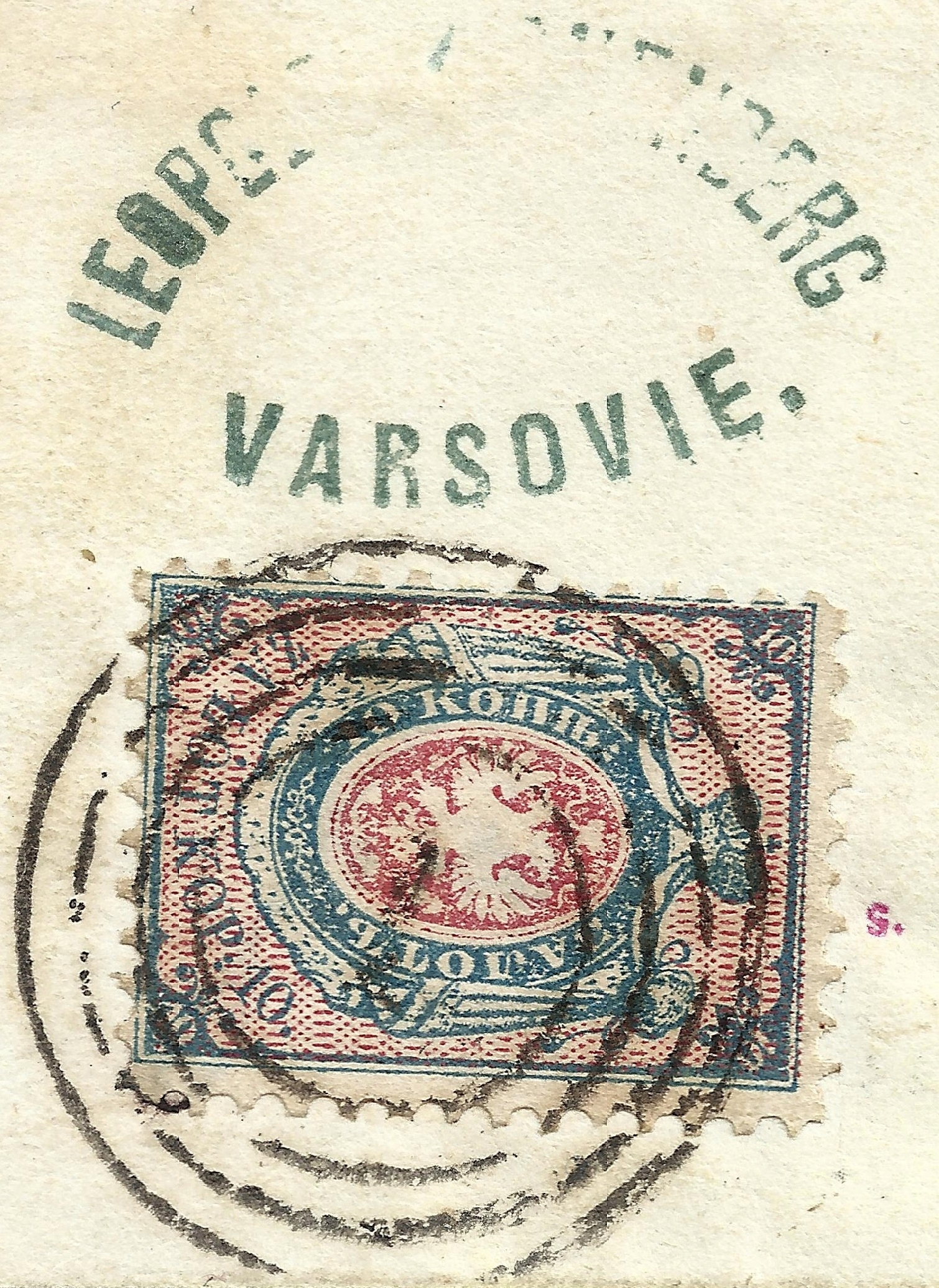 1860 г. Польша Fi.1 на одном конверте, ПИСЬМО КОРОЛЕВСТВА ПОЛЬША gw. КАЛИНОВСКИЙ