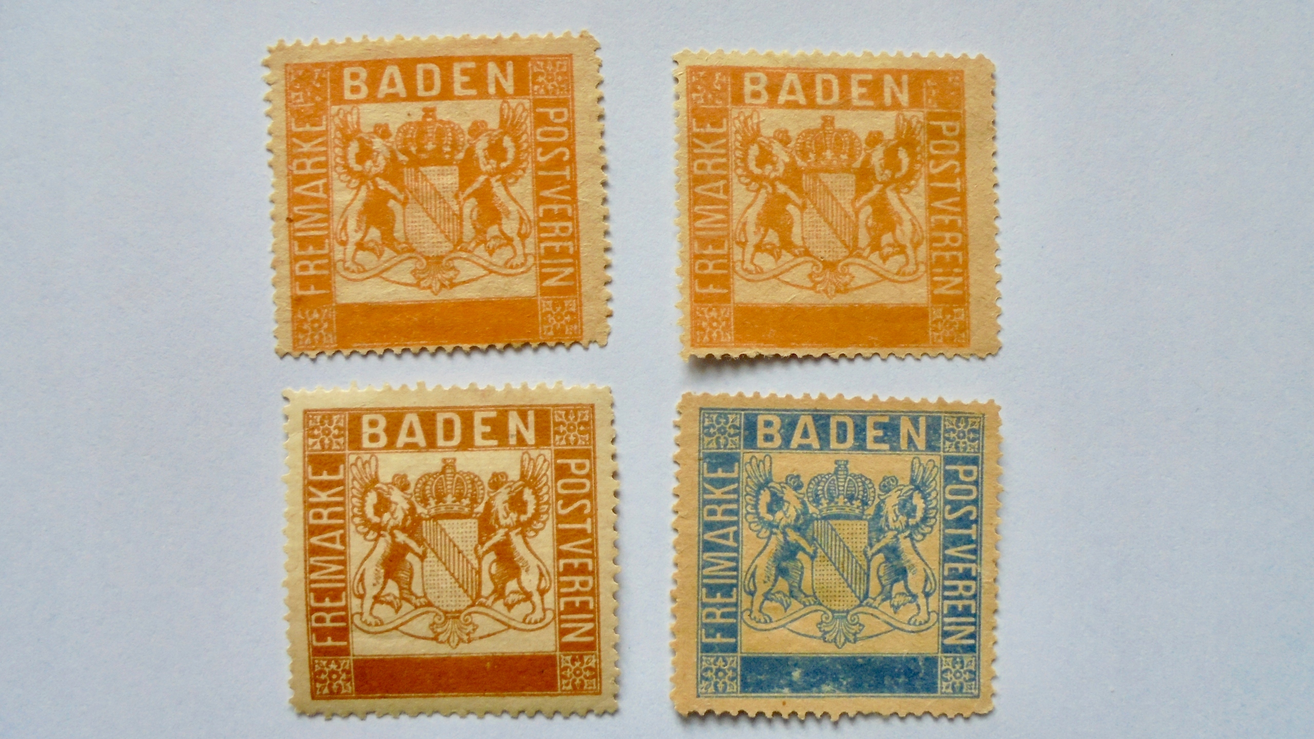 1862 Baden cztery czyste */(*) druki próbne RZADKOŚĆ