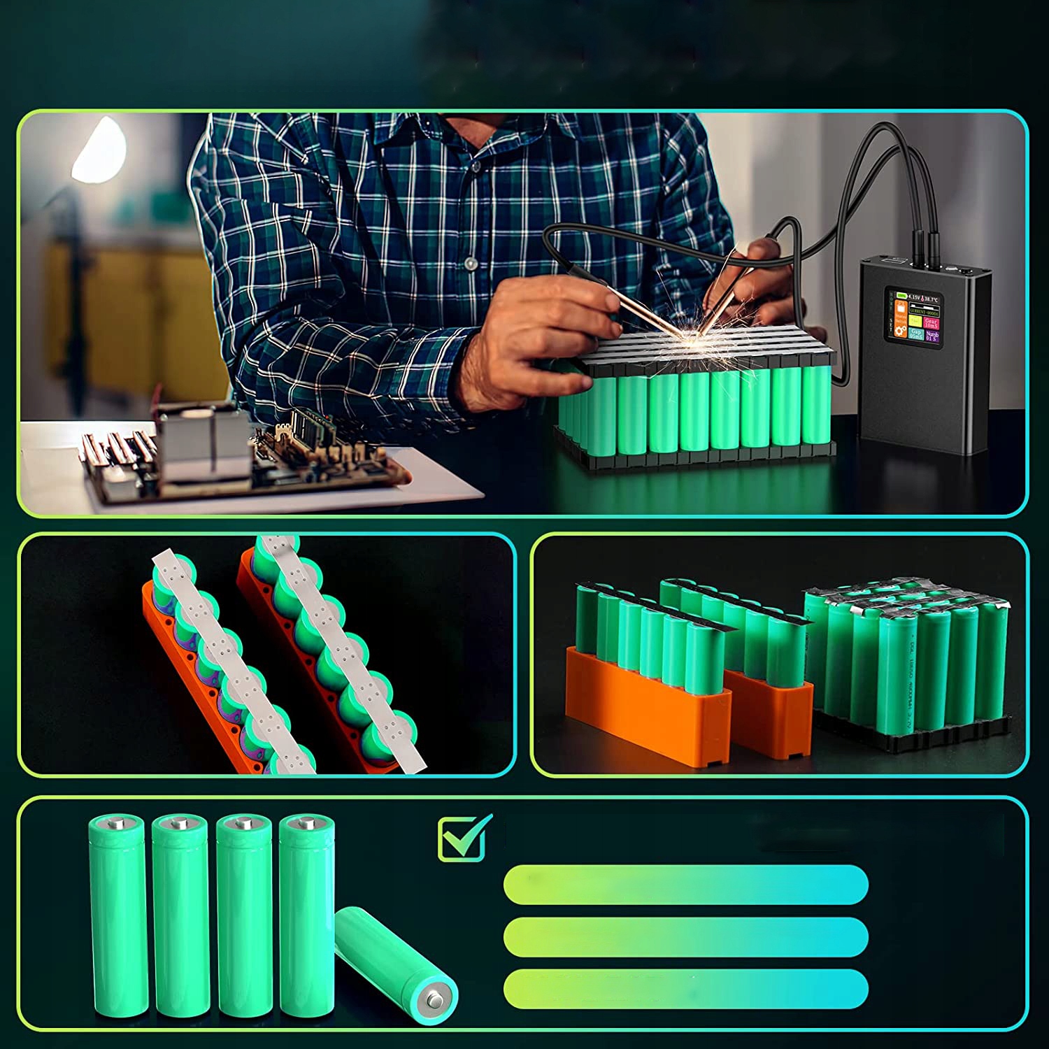 В отличие от большинства аппаратов для точечной сварки, представленных на рынке, наш мини-паяльник поддерживает толщину 0,1–0,15 мм. Эта машина небольшого размера, но полностью функциональна и может удовлетворить ваши различные потребности в производстве аккумуляторов. (Примечание: после получения сначала зарядите и потренируйтесь много раз, чтобы найти подходящую мощность пайки.)