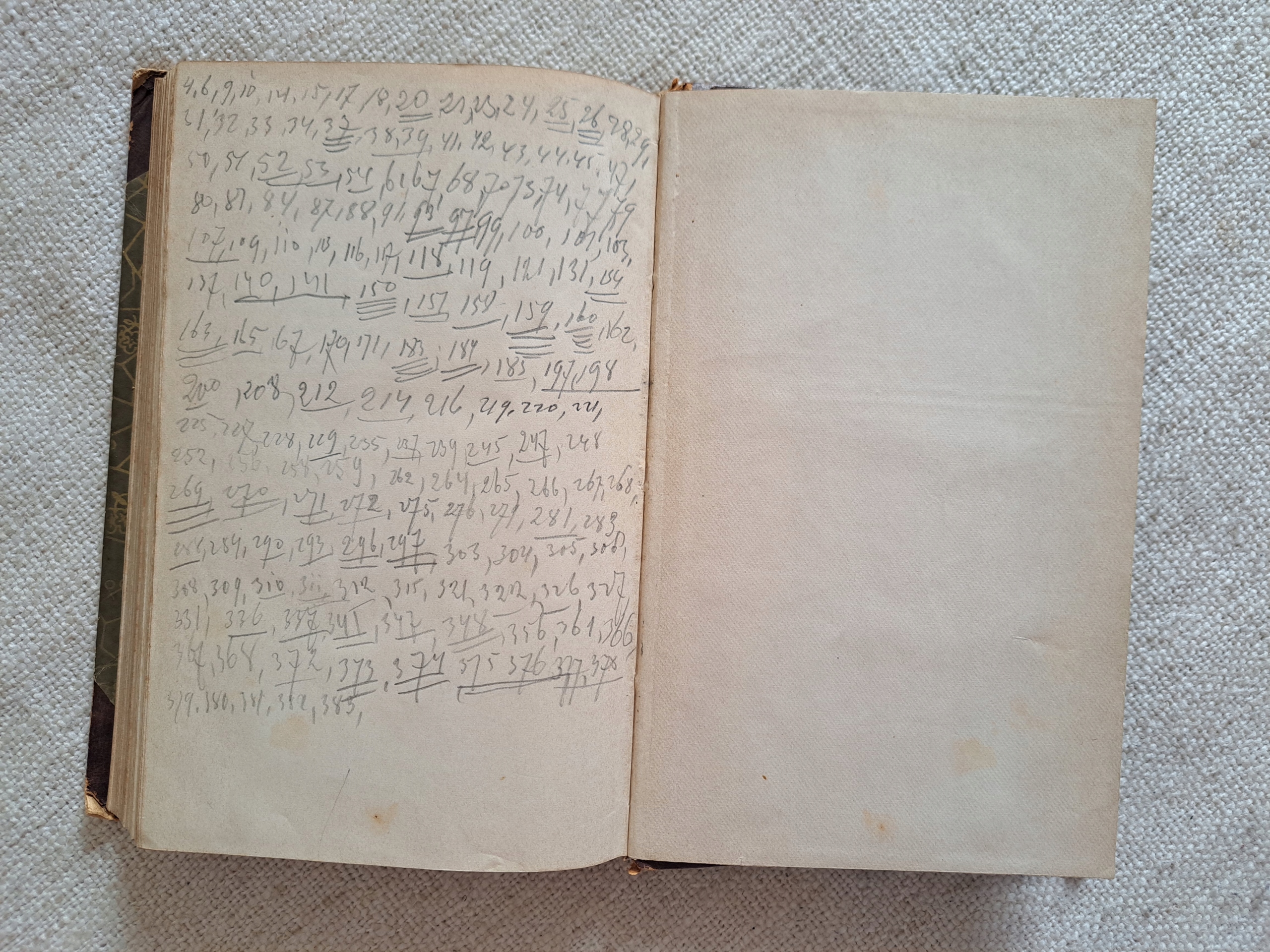 Состояние: очень хороший. Единый книжный блок. Страницы обесцвечены с возрастом. Библиотечная этикетка на корешке. Переплет потерт в углах. Последняя страница написана карандашом. Ярлык экслибриса на титульном листе: «Из библиотеки А. Рембилинского. № 1855».