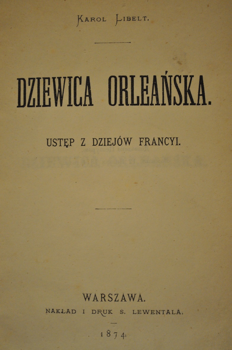 1874 / K. LIBELT - DZIEWICA ORLEAŃSKA / J. U. NIEMCEWICZ JAN Z TĘCZYNA /668