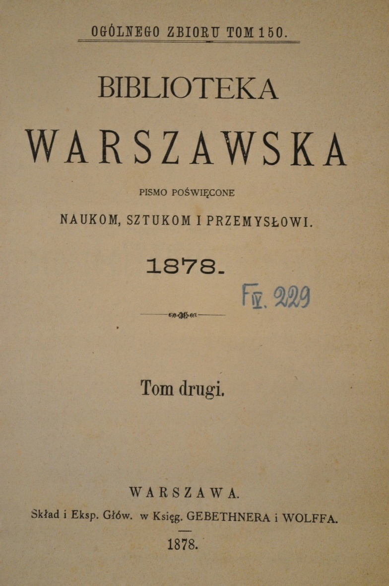 "Варшавская библиотека. Журнал, посвященный науке, искусству и промышленности — ежемесячный литературно-научный журнал, издававшийся в Варшаве в 1841–1914 годах, поддерживавший высокий уровень на протяжении всего своего существования и пользовавшийся большой популярностью. интерес среди читателей.