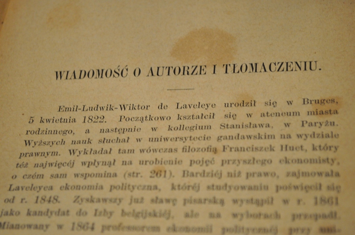 "Эмиль Луи Виктор, барон де Лавеле, родился 5 апреля 1822 года в Брюгге, умер 2 января 1892 года в Шато де Дойон (Авеланж), был бельгийским экономистом-социалистом, историком и историком. писатель. Он был одним из соучредителей Института международного права в 1873 году».