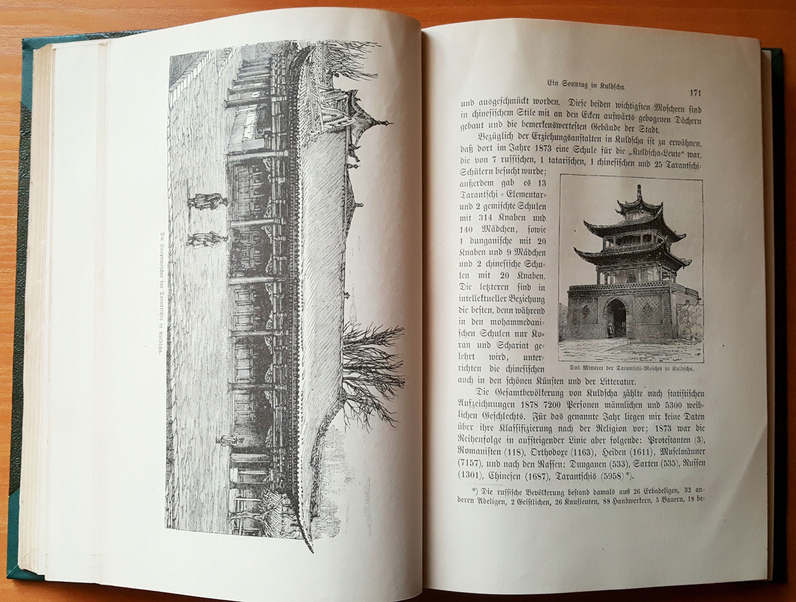 - Иллюстрированная книга (гравюры на дереве) + КАРТА («Karte von Russisch Asien vom Kaspischen Meere bis Kuldscha»)