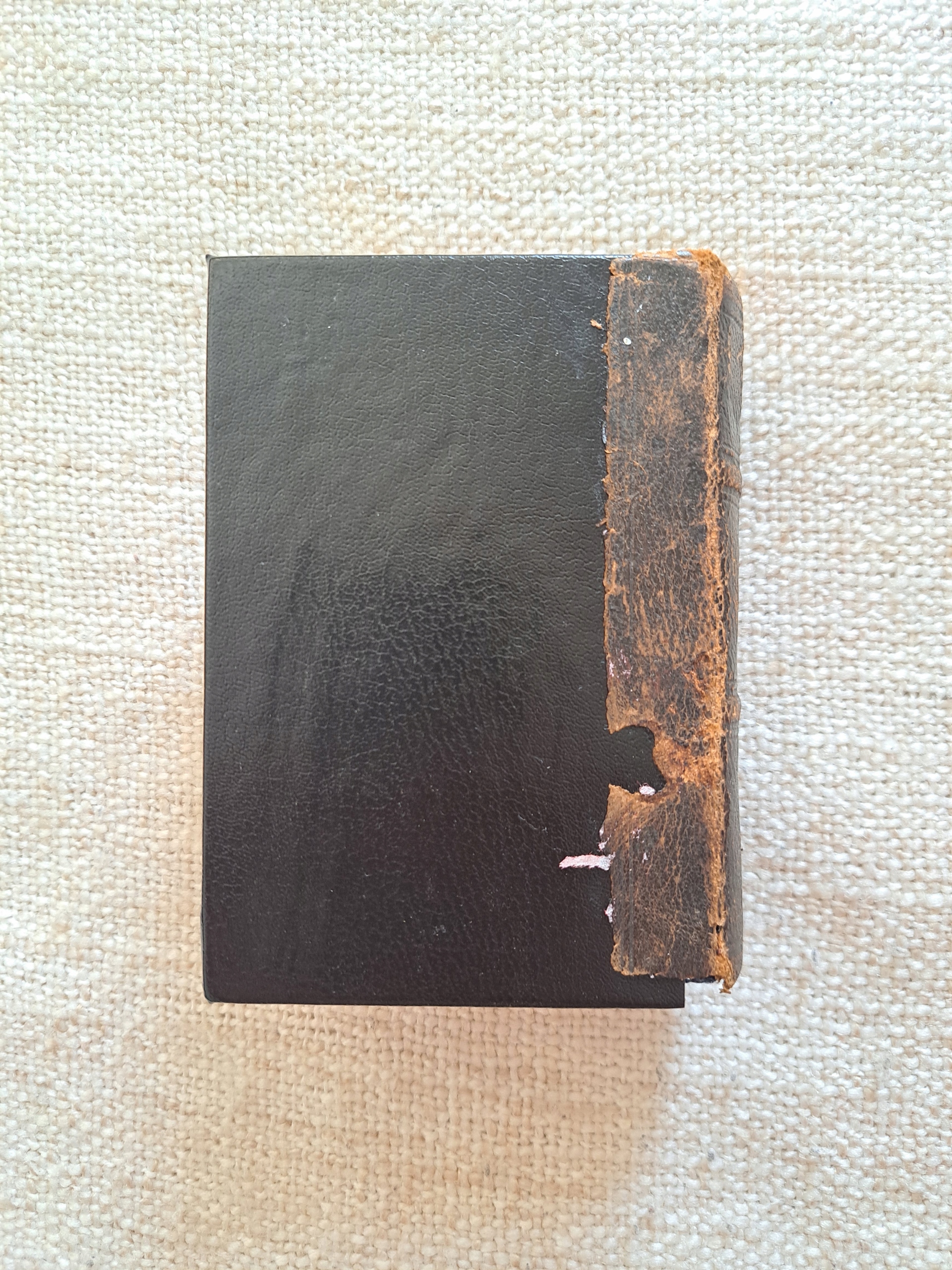 Состояние: Книжный блок целый. Страницы выцвели из-за возраста книги. Отсутствуют страницы 483-486. Задняя крышка не оригинал. Зазор между корешком и передним переплетом вверху. Несколько страниц порвано. Края переплета потерты. Подпись предыдущего владельца на титульном листе.