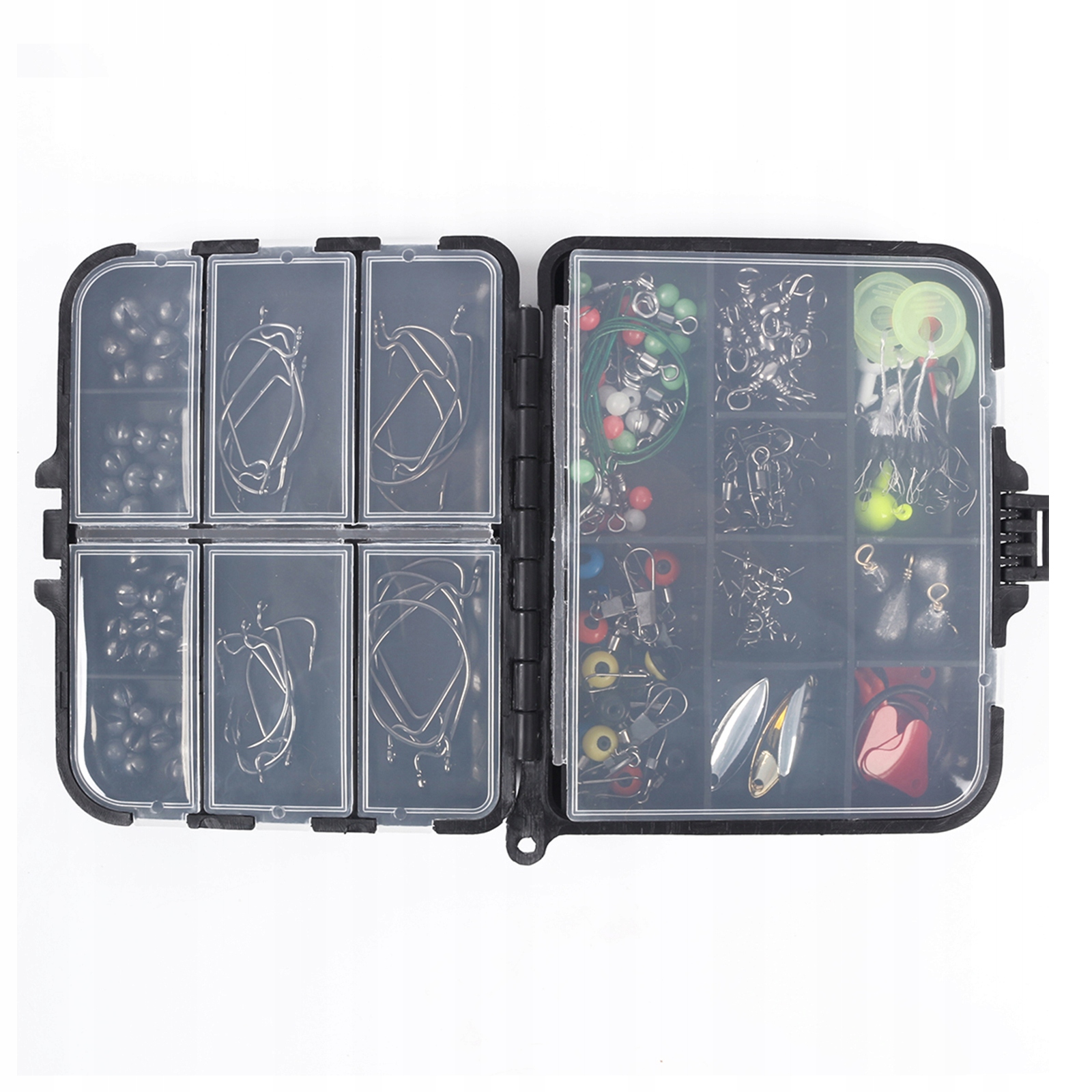 - 188 шт. рыболовных аксессуаров включают в себя рыболовные снасти, грузила, поводки и различные необходимые аксессуары.