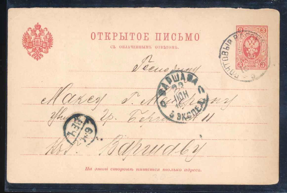 1892 г. Царь Российский, карточка ПРОСКУРОВА в Варшаву.