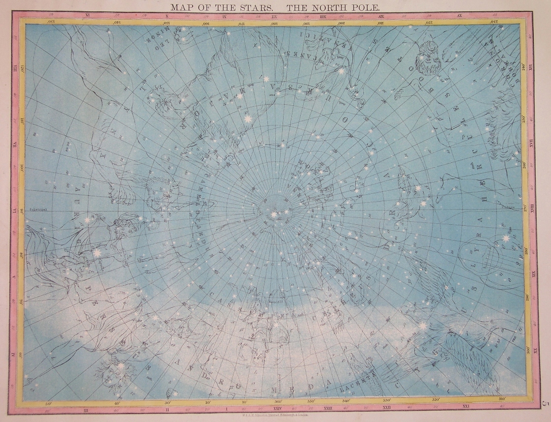 ОРИГИНАЛЬНАЯ КАРТОЧКА, НАПЕЧАТАННАЯ НА ДВУХ СТОРОНАХ: КАРТЫ СЕВЕРНОГО И ЮЖНОГО НЕБА из английского атласа под названием «Атлас Виктории», изданного «W. & A.K. Johnson Ltd.», Лондон и Эдинбург, 1898 г. Это красочные литографии, четко отпечатанные на листе бумаги без атласного сгиба, с издательским нижним колонтитулом под рамами. ------ Размеры печатных частей примерно 19,5 на 25,5 см, а карточек примерно 24 на 31 см. ----- Карта в очень хорошем состоянии (только незначительные загрязнения и изменение цвета бумаги).