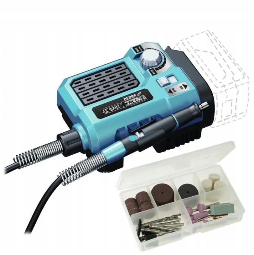 Функции продукта h2> Машина для добычи аккумулятора DED6903 является одним из популярных инструментов, которые, безусловно, не могут отсутствовать в домашней мастерской или дома. В зависимости от потребностей в бурении, шлифовании, полировке или резке. Набор включает в себя 40 аксессуаров, и благодаря держателю аксессуары, установленные на устройстве, мы всегда будем иметь их под рукой Устройство имеет регулируемую скорость вращения в диапазоне 5000-33000RPM. DED6903 Минификатор.