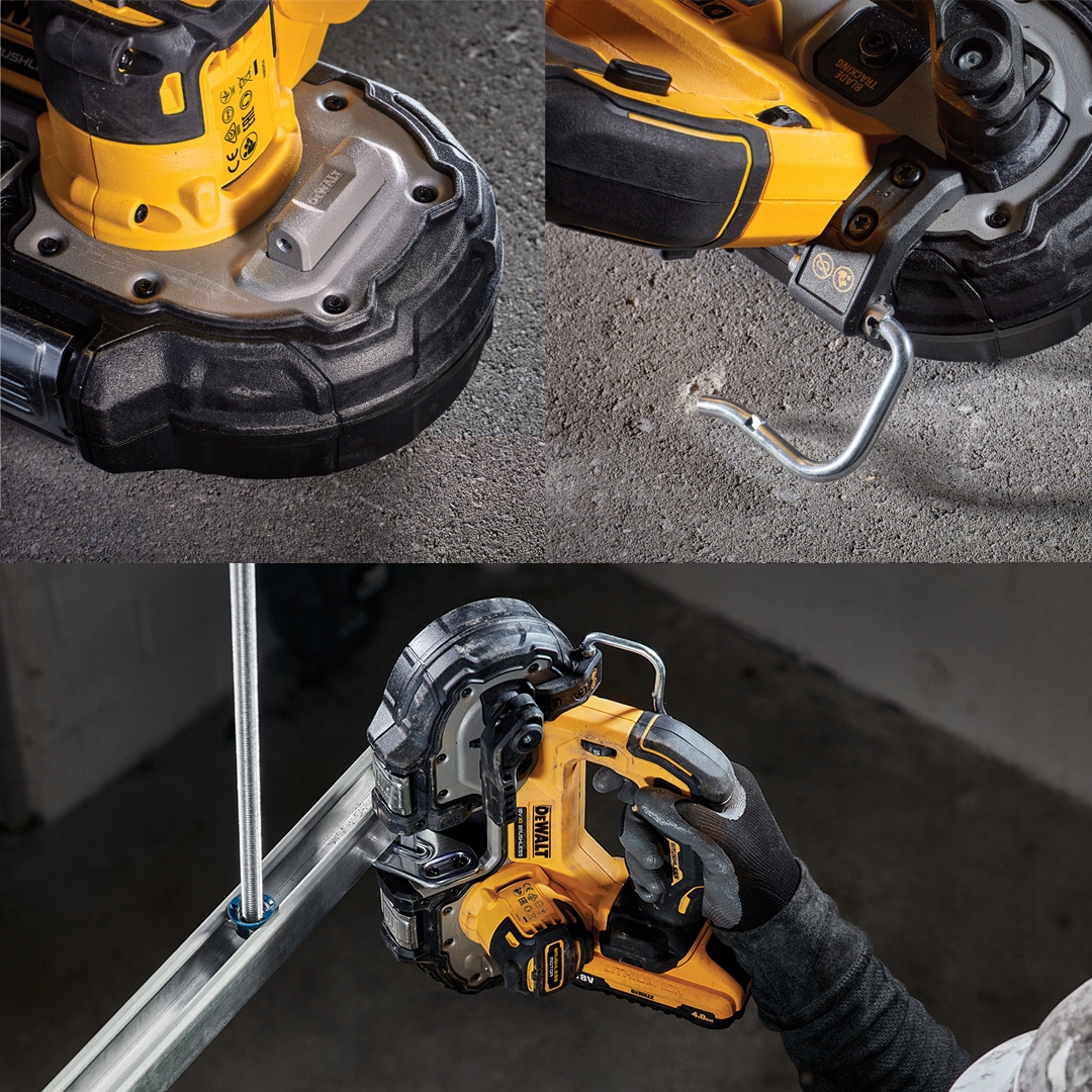 Аккумуляторная ленточная пила DCS377NT от DeWalt обеспечивает плавную резку без заусенцев с минимальным искрообразованием или без него при контакте с металлом. Он идеально подходит, например, для резки стальных труб или резьбовых стержней. Сбалансированное распределение веса и удобная мягкая рукоятка обеспечивают более легкое управление пилой как при резке сбоку, так и над головой, а светодиодная подсветка обеспечивает лучшую точность резки в плохо освещенных помещениях. Долгий срок службы обеспечивается прочной, качественной конструкцией, а безотказную работу обеспечивает бесщеточный двигатель. В ленточной пиле DeWALT DCS377 используются прочные двойные направляющие ролики с подшипниками. Электроинструмент включает в себя рычаг замены лезвия, который снимает натяжение лезвия, чтобы максимально упростить замену лезвия, и крючок для подвешивания устройства между перерывами в работе. Эта портативная ленточная пила предназначена для использования с лентами толщиной 0,5 мм, шириной 12,7 мм и длиной 686–692 мм. Не используйте ленты толщиной 0,64 мм.