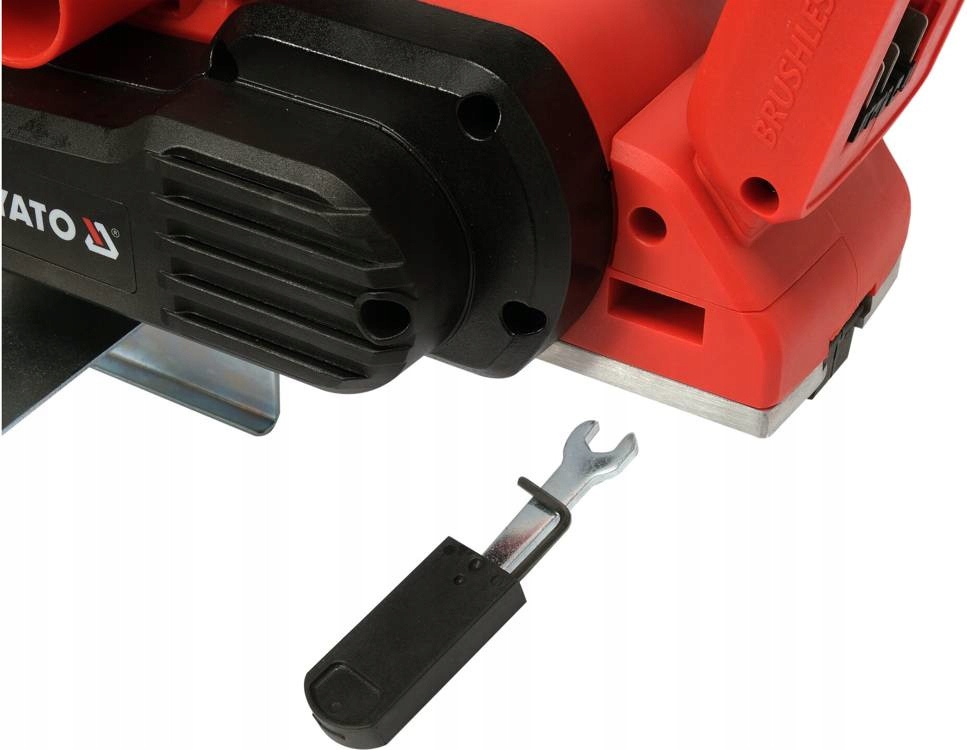 Удобен для кровельных работ при строгании обрешетки и софитов, где важна мобильность и возможность работы без электричества. Глубина реза регулируется удобной ручкой. Бесщеточный двигатель обеспечивает долговечность устройства и мощность для пользователя. Жесткая направляющая с большой контактной поверхностью обеспечивает высокое качество работы. На ножке имеется V-образная выемка, которая помогает снять фаску по краям. Рубанок оснащен ножкой для регулировки глубины притвора, что облегчает нахлест деревянных элементов. Боковой переключатель выброса опилок и возможность подключения пылесоса облегчат поддержание порядка на рабочем месте. Прочный корпус усилен стекловолокном.