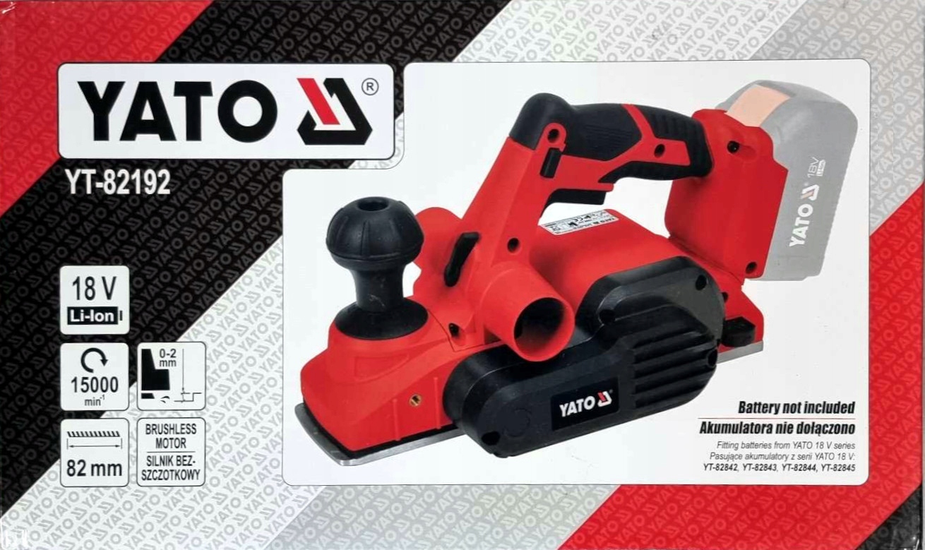 Компактный и эффективный аккумуляторный рубанок YATO, незаменимый при деревообработке и связанных с ней отделочных работах.