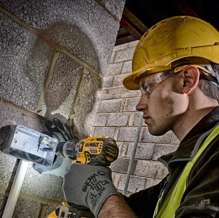 - Компактная дрель/отвертка XR на 18 В, оснащенная новыми литий-ионными аккумуляторами XR емкостью 2,0 Ач.