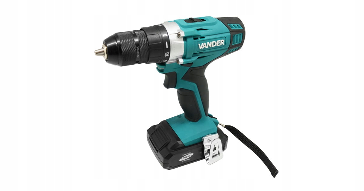 Дрель-шуруповерт Vander имеет мощный и долговечный двигатель, двухскоростную коробку передач, регулировку скорости и светодиод для работы в темных местах. В комплект входят две литий-ионные батареи Samsung.