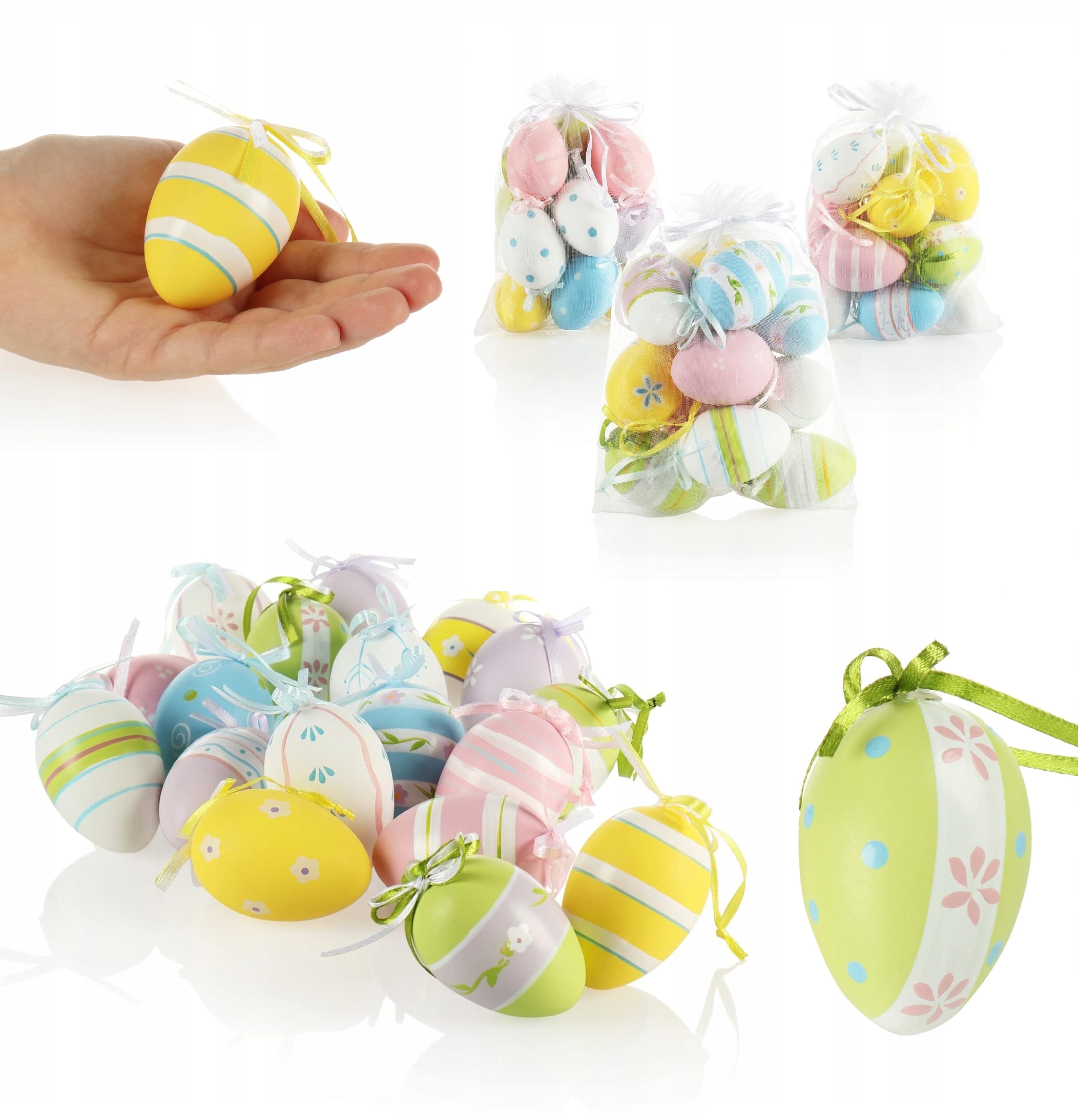 Приготовьтесь к радостной атмосфере Пасхи благодаря этому очаровательно красочному набору пасхальных украшений. Набор содержит 18 красиво оформленных яиц, идеально подходящих для обстановки на пальмах, помещения в корзину или создания рождественской плоти.
