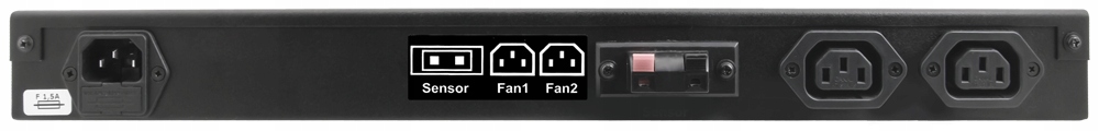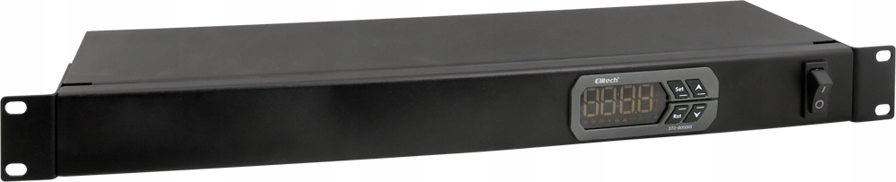 Цифровая панель термостата в 19-дюймовом корпусе RACK, высотой 1U. Имеет две розетки – используются для управления вентиляторными блоками RAWP/RAWP-1/RAW1/RAW2. Панель имеет съемный датчик температуры длиной 2 м и съемный кабель питания переменного тока 230 В длиной 2 м.