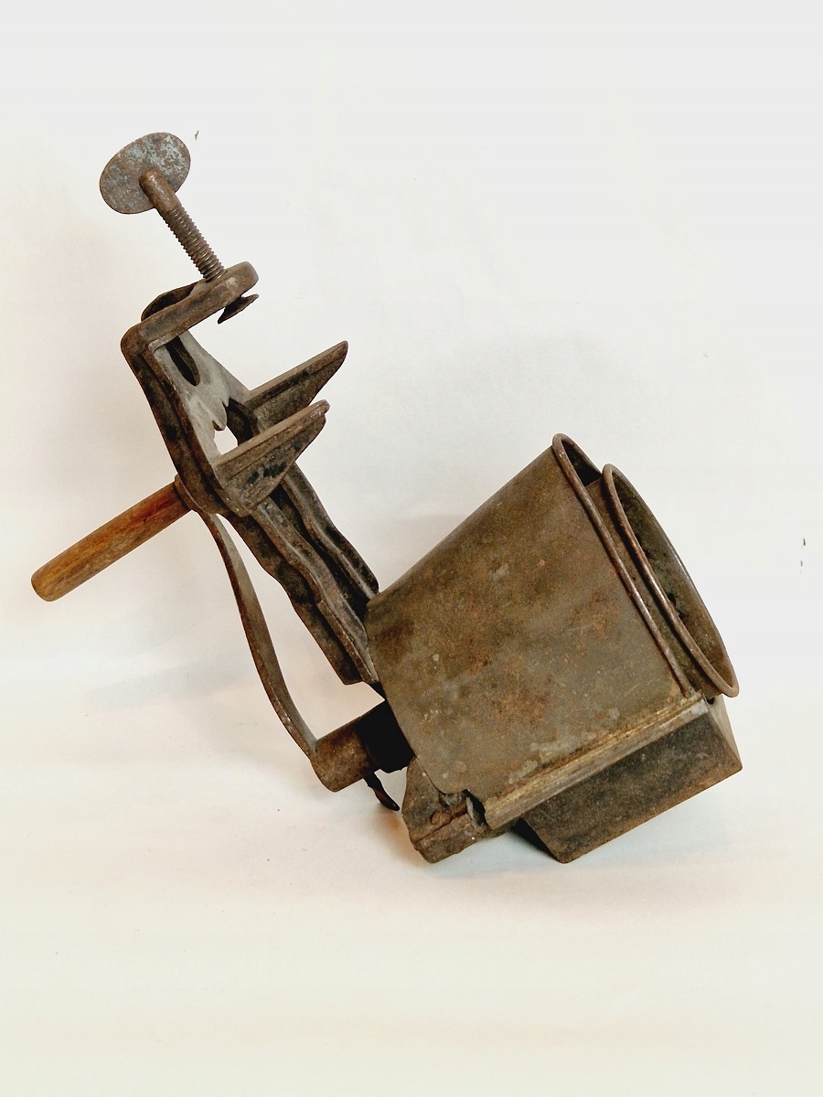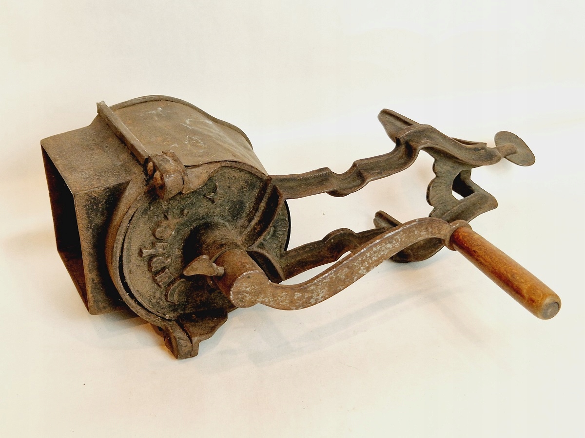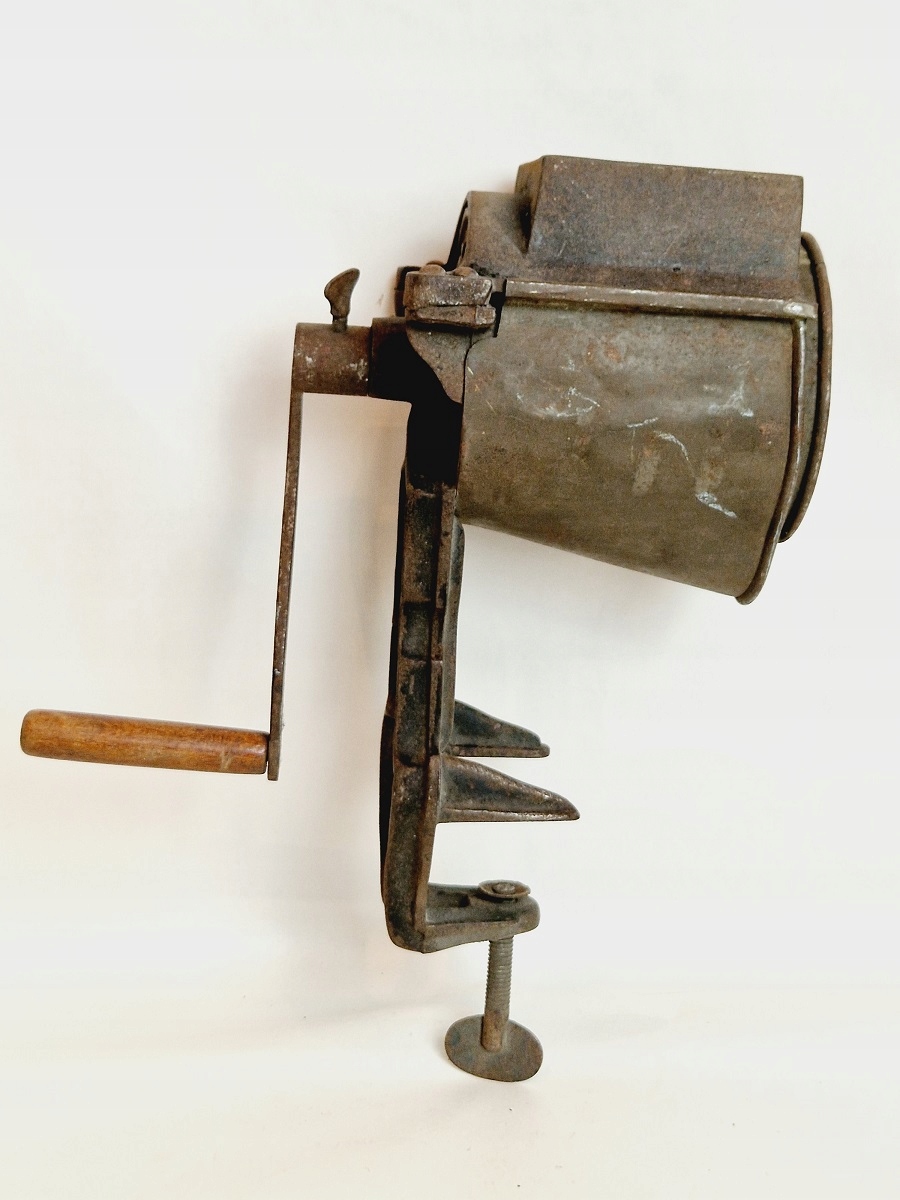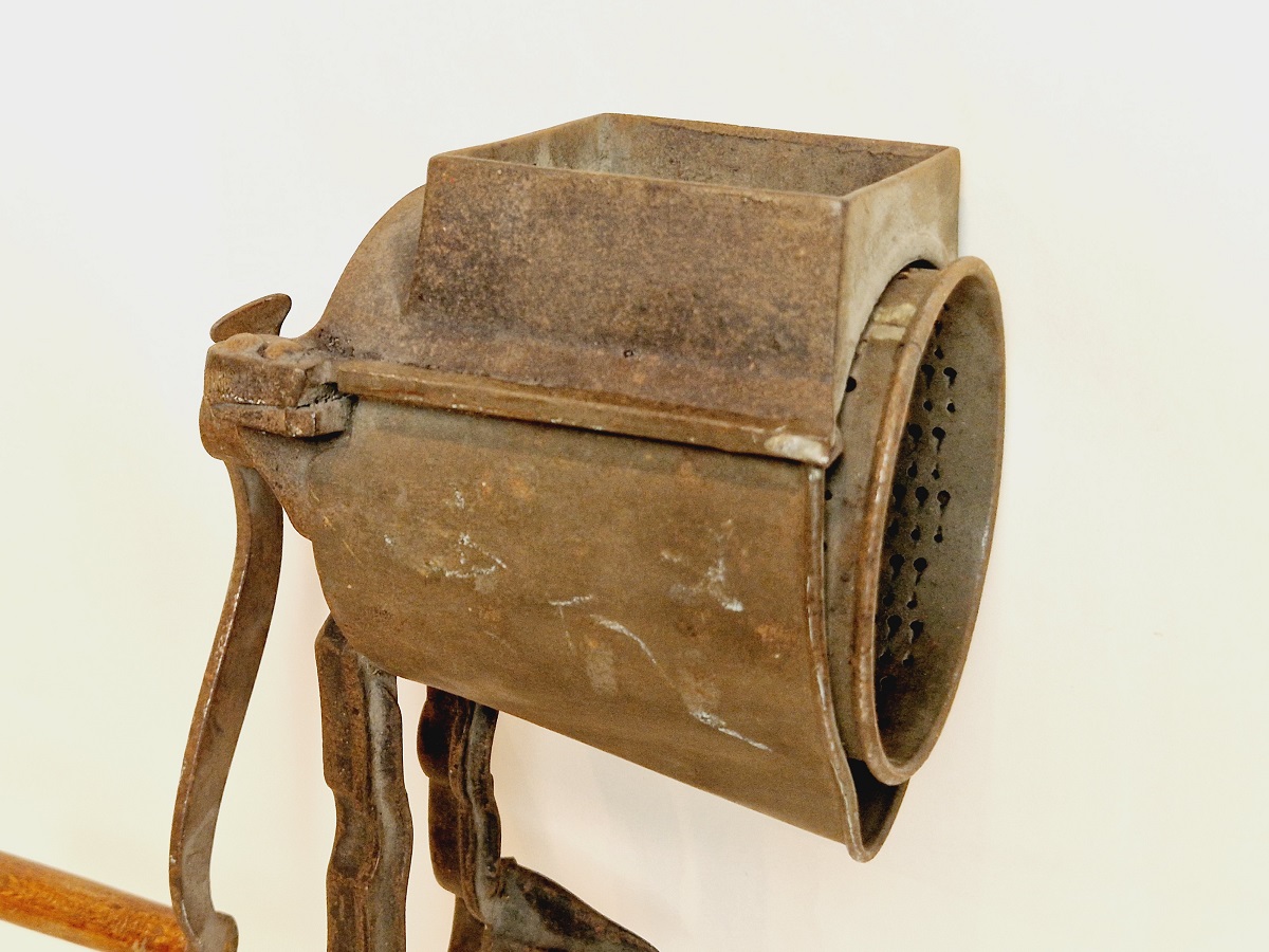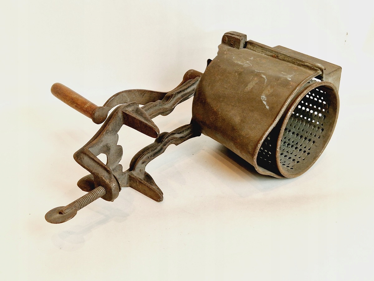 Измельчитель в хорошем коллекционном состоянии - без надетой загрузочной камеры и деревянного зажима.