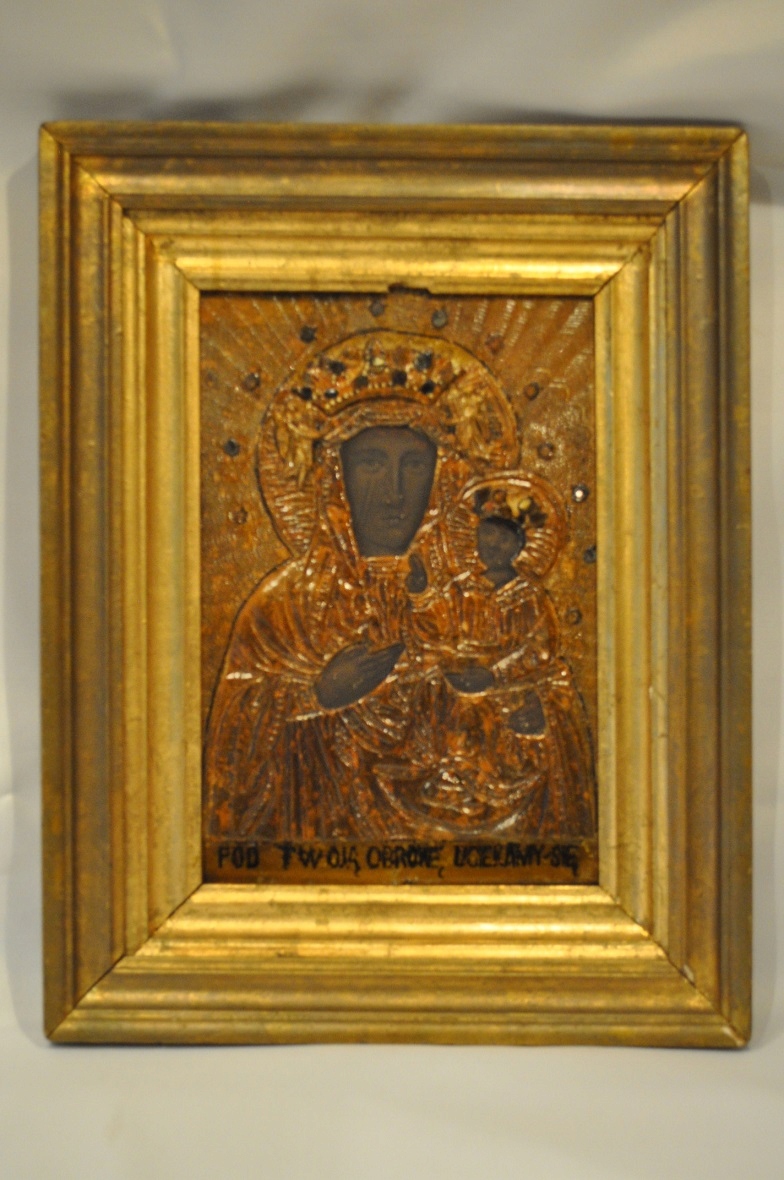 19-20 ст. / СТАРИЙ ЖИВОПИС (32,5 см х 26,5 см) ПОЛЬСЬКА ІКОНА "МАТИ БОЖА" /8212