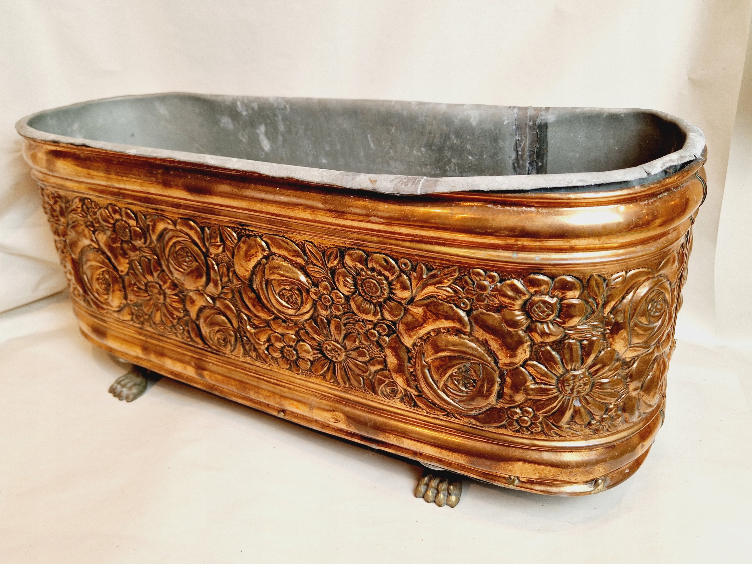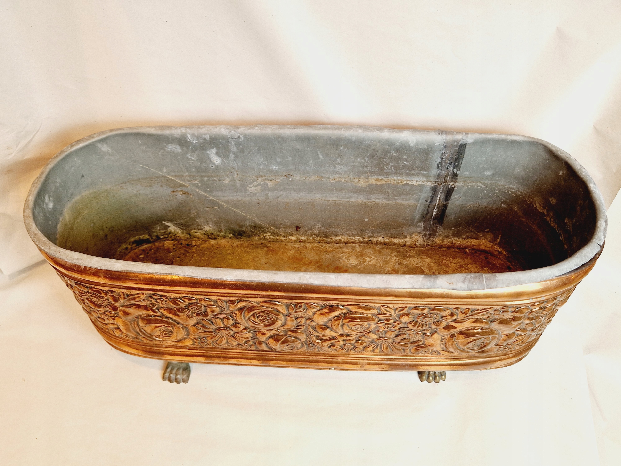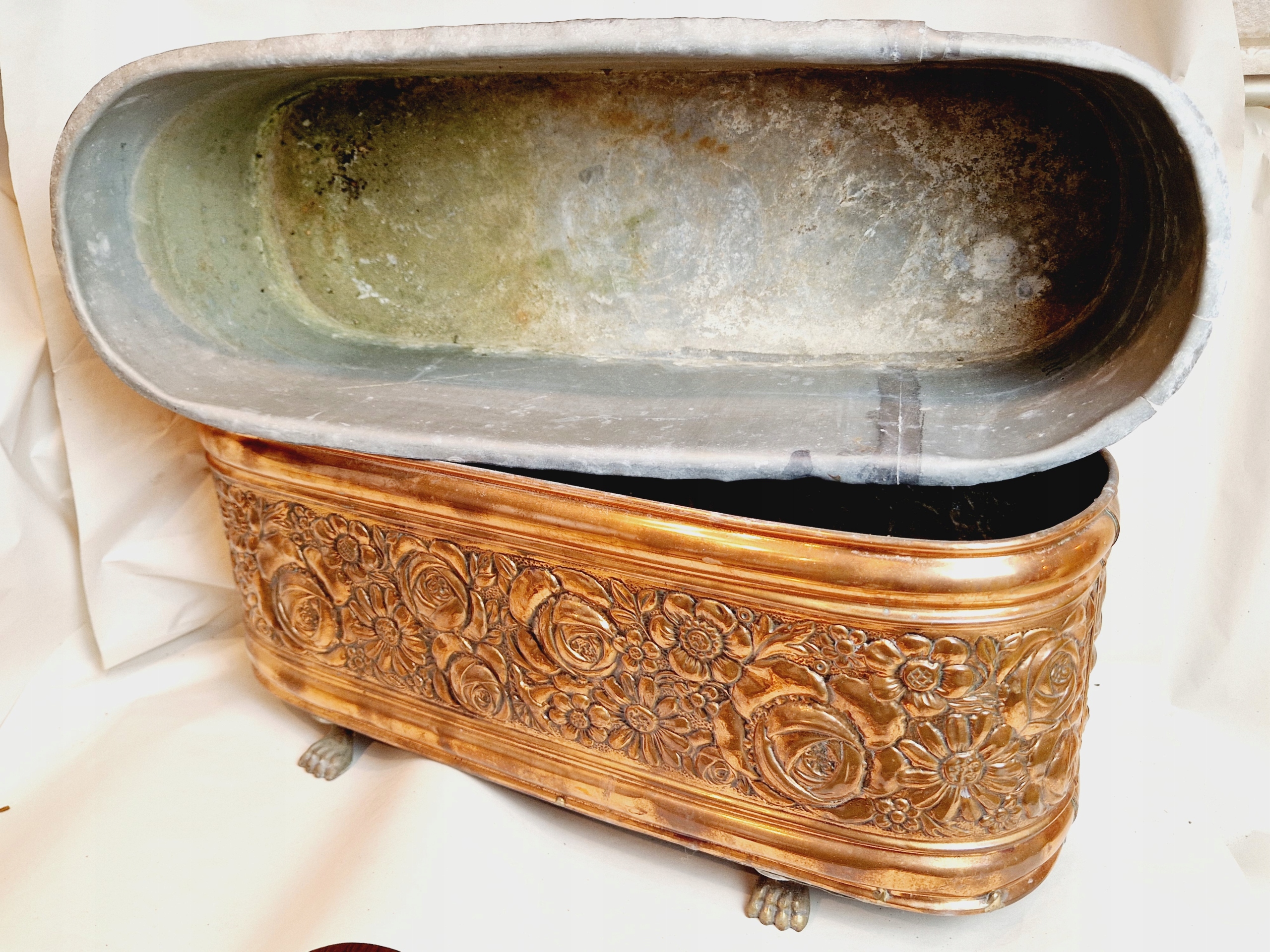 19-20 ст. ВЕЛИКА ПІДСТАВКА ДЛЯ КВІТІВ МІДНА ЖАРДІНЬЄ 55 см ГОРЩИК ДЛЯ КВІТІВ ОЦИНКОВАНА ВСТАВКА /4131