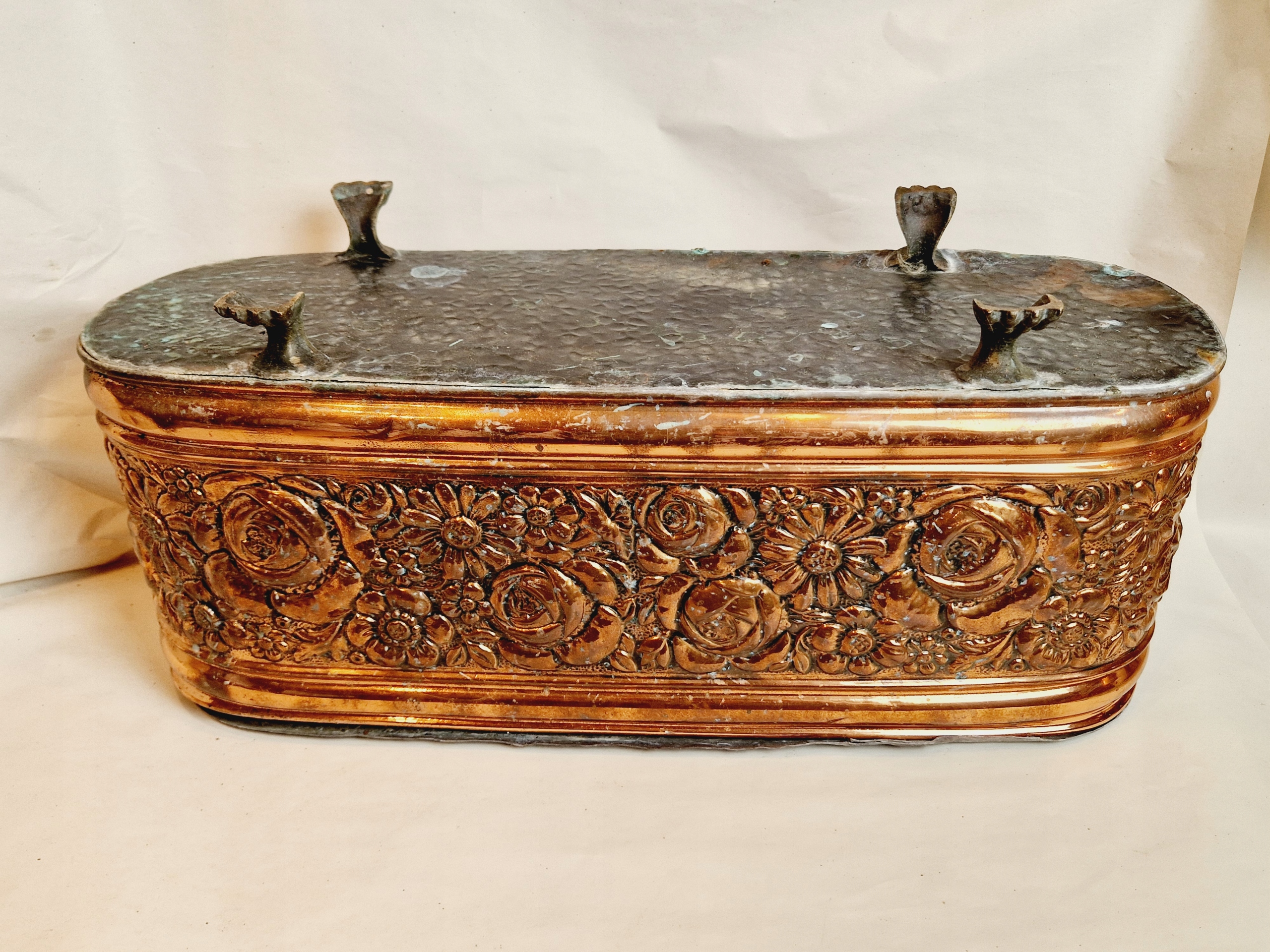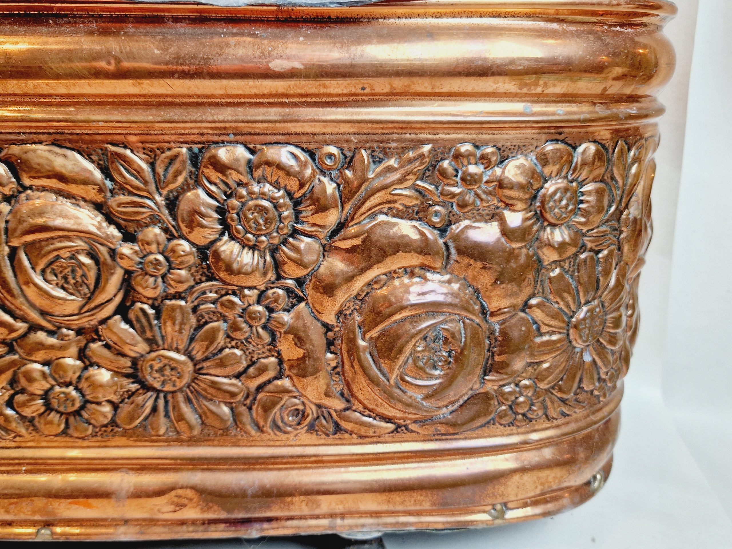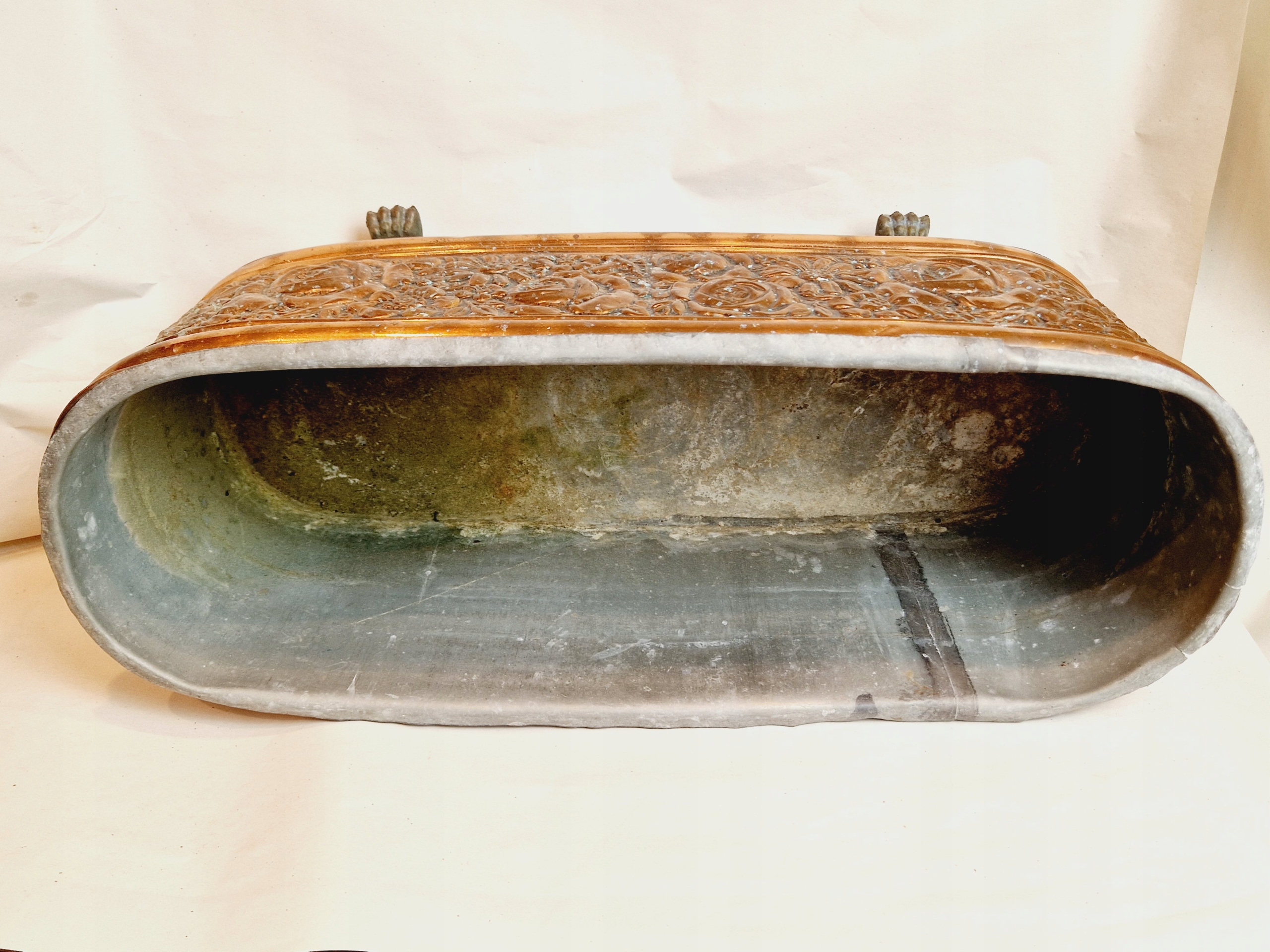 19-20 ст. ВЕЛИКА ПІДСТАВКА ДЛЯ КВІТІВ МІДНА ЖАРДІНЬЄ 55 см ГОРЩИК ДЛЯ КВІТІВ ОЦИНКОВАНА ВСТАВКА /4131