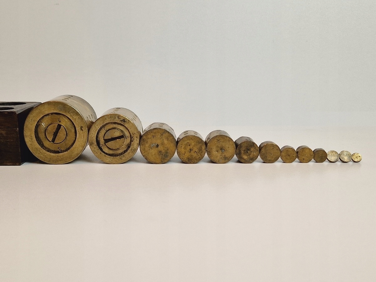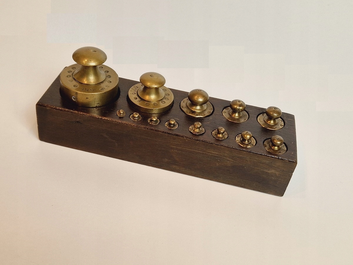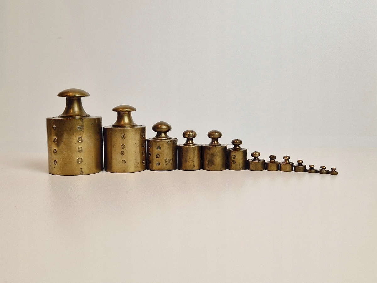 19-20 ст./комплект 13 шт.(1г-1кг) ТОРГОВІ ВАГИ ГОЛЛАНДСЬКІ В ФУТЛЯРІ /760 шт.