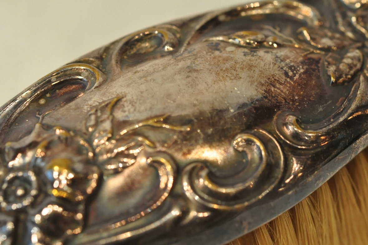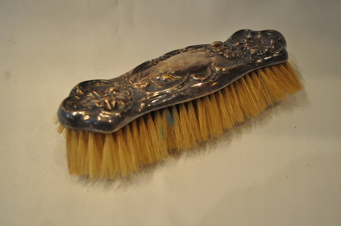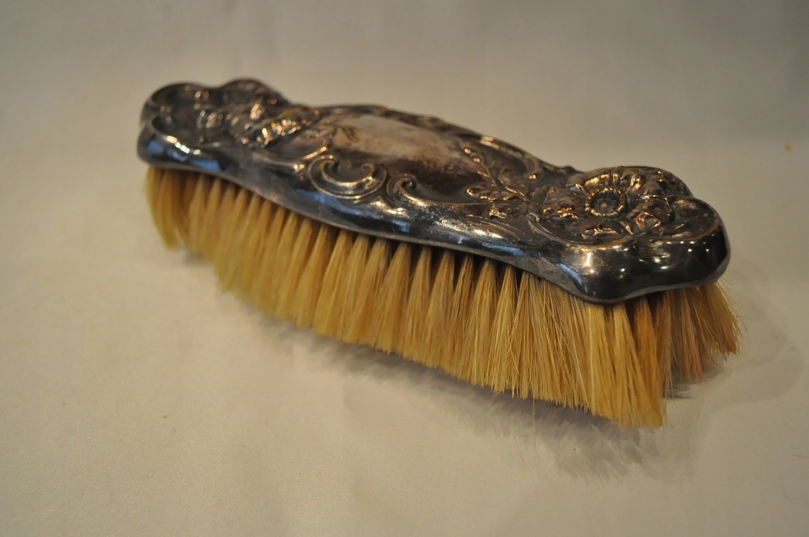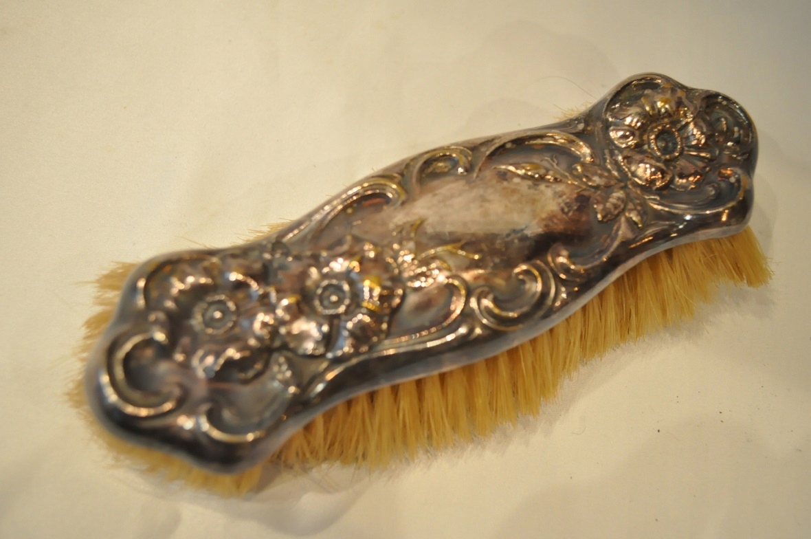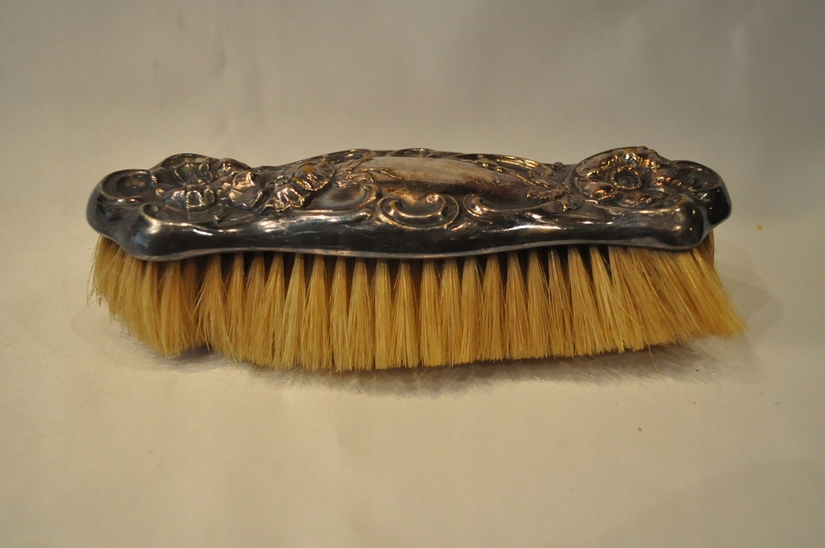 19-20 століття / АНТИКВАРНА ПОСРІБЛЕНА ЩІТКА ДЛЯ ТУАЛЕТУ - ВЗІЗУНОК ІРИС /4197