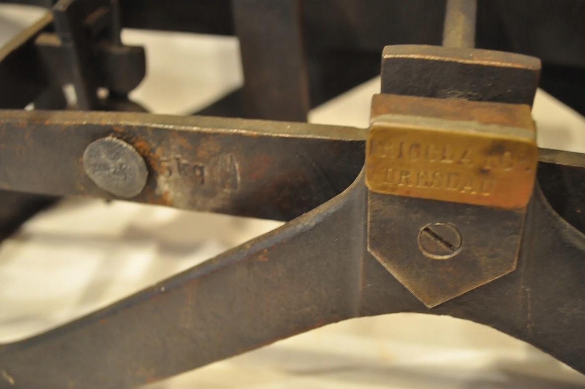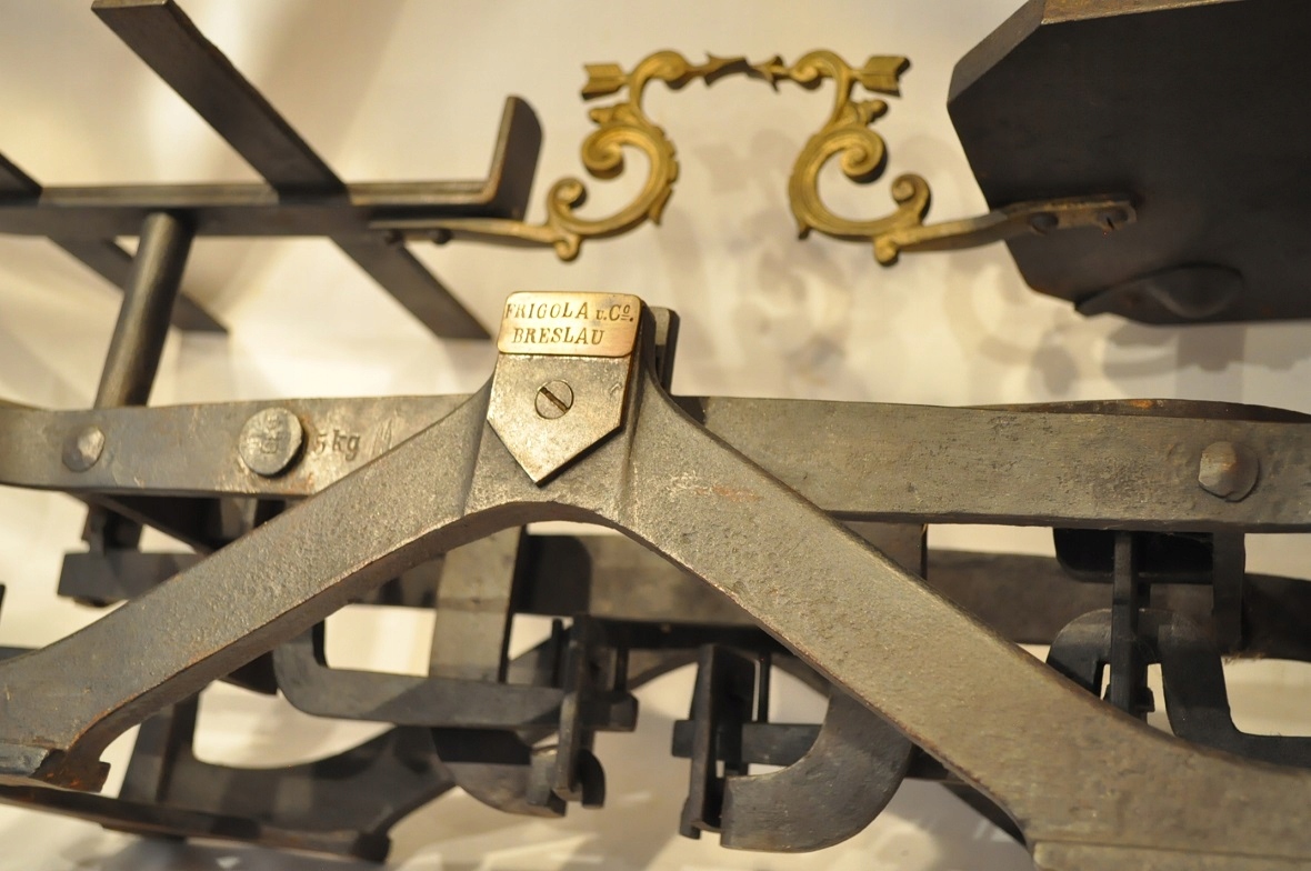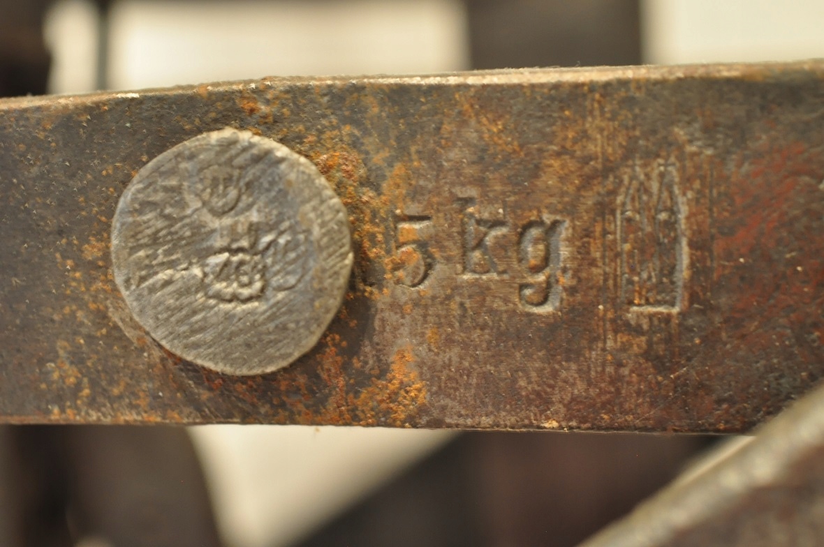 Эмблема производителя (латунная табличка) в центральной части корпуса весов: