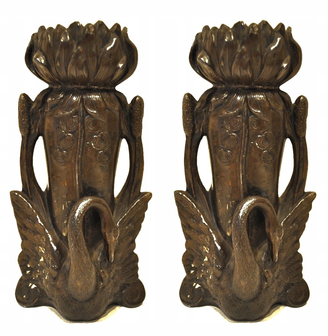19-20 століття / Набір 2 шт. - "ЛЕБЕДІ" - АНТИЧНІ ВАЗИ - СВІЧНИКИ /8689