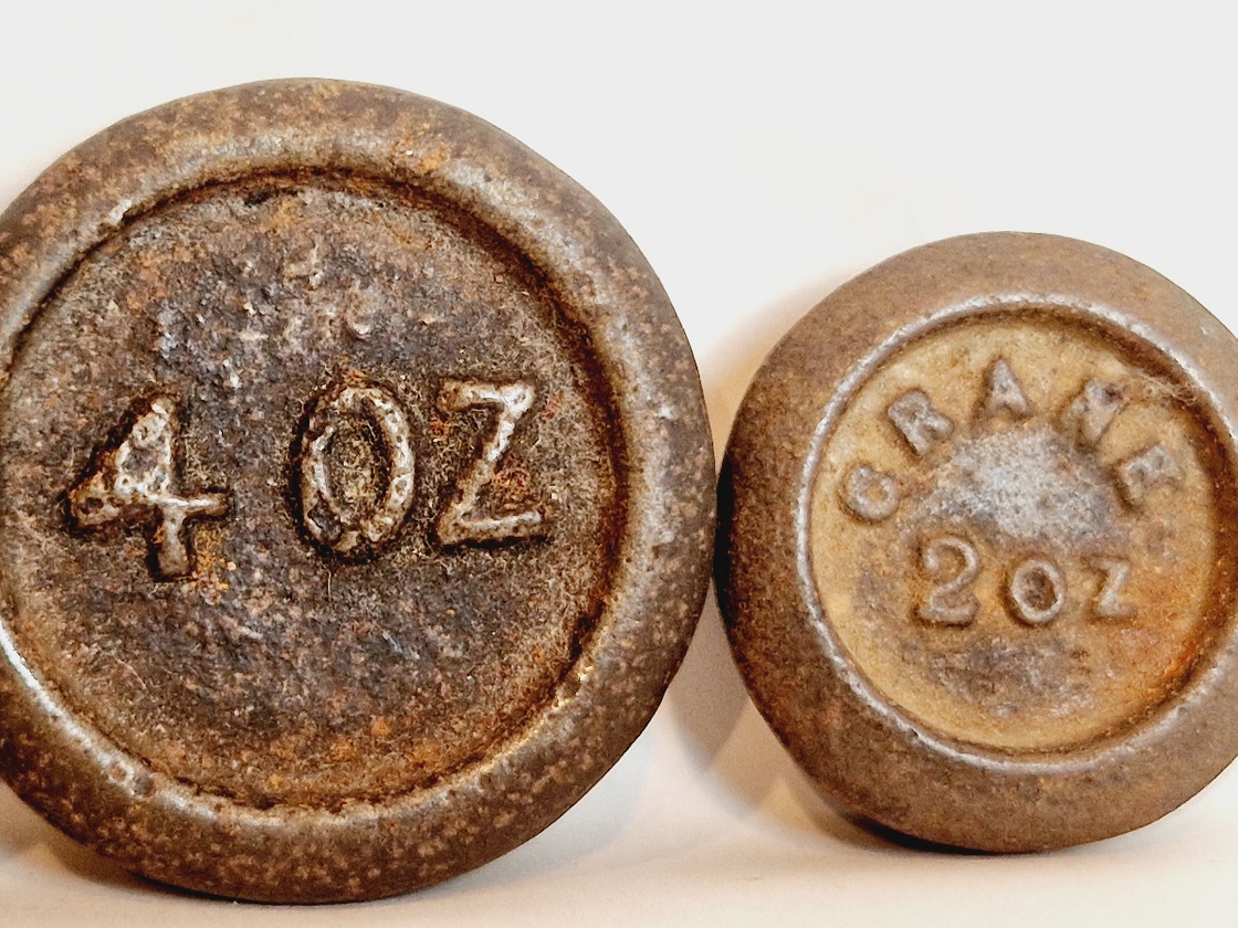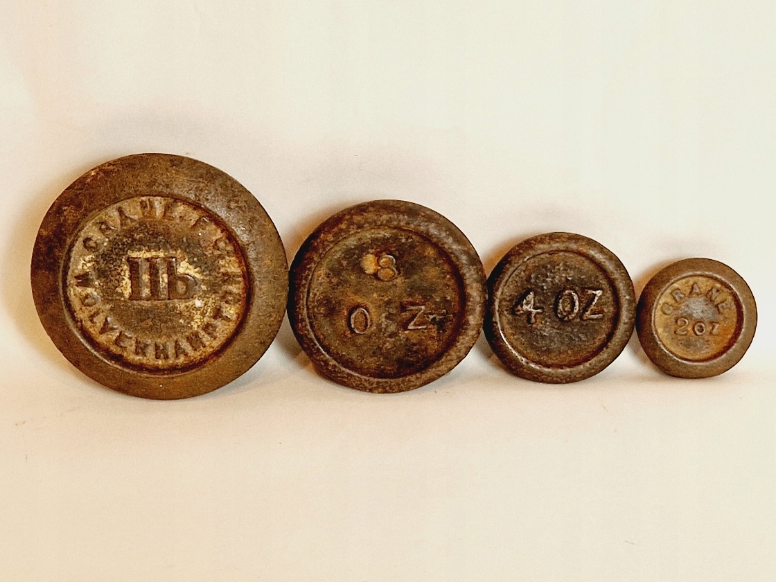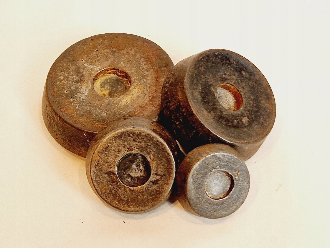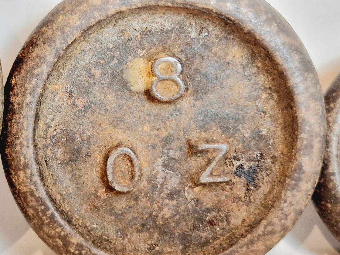 Поверхность гирь покрыта нежным ржавым налетом.