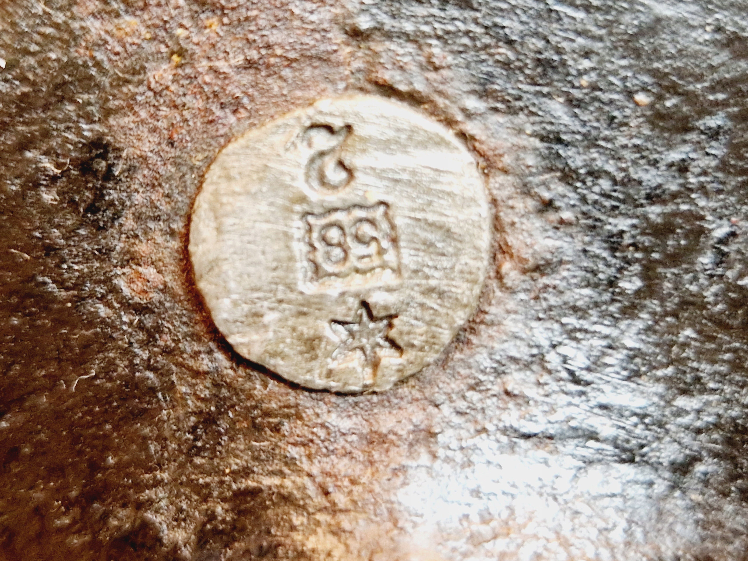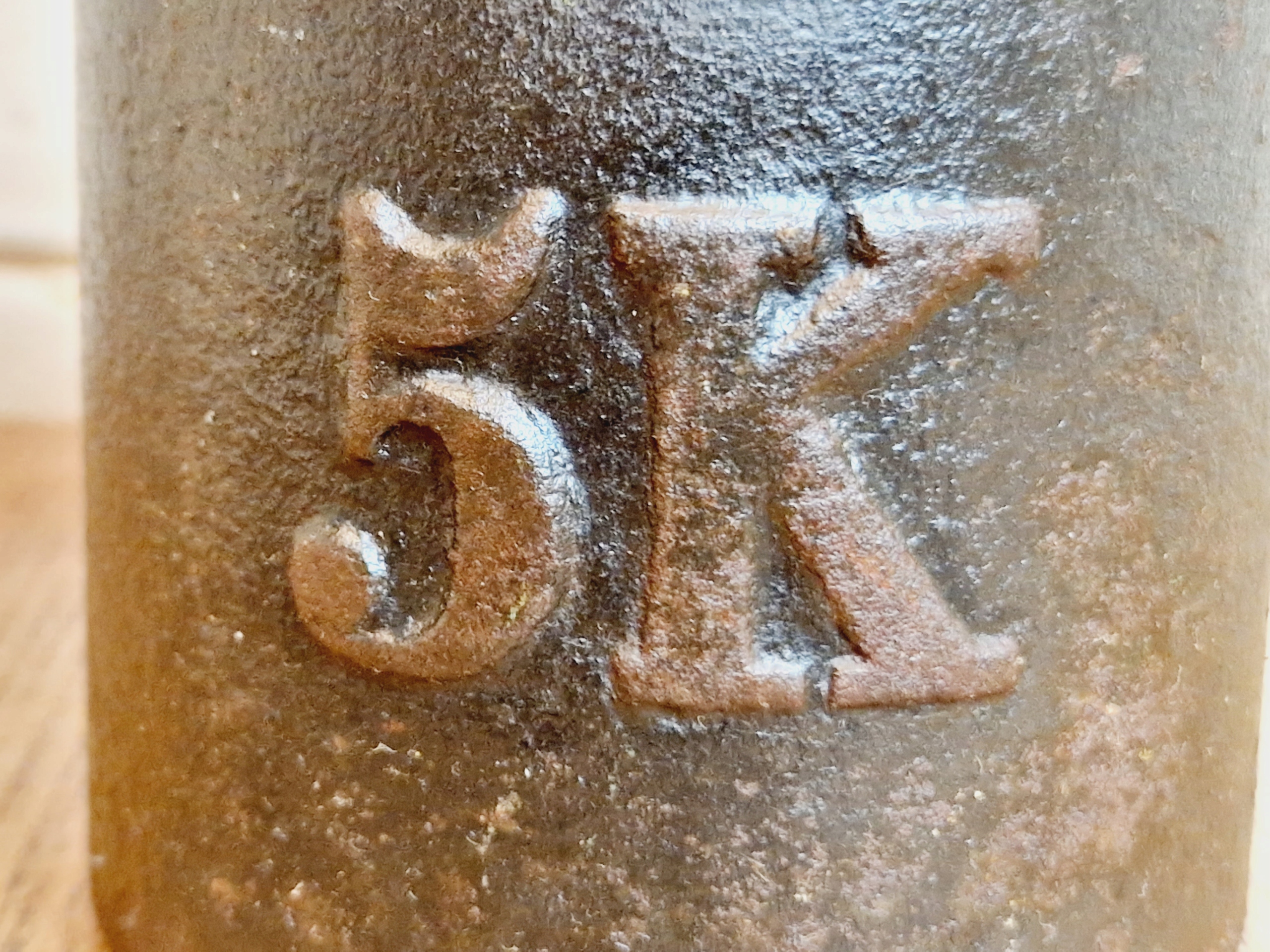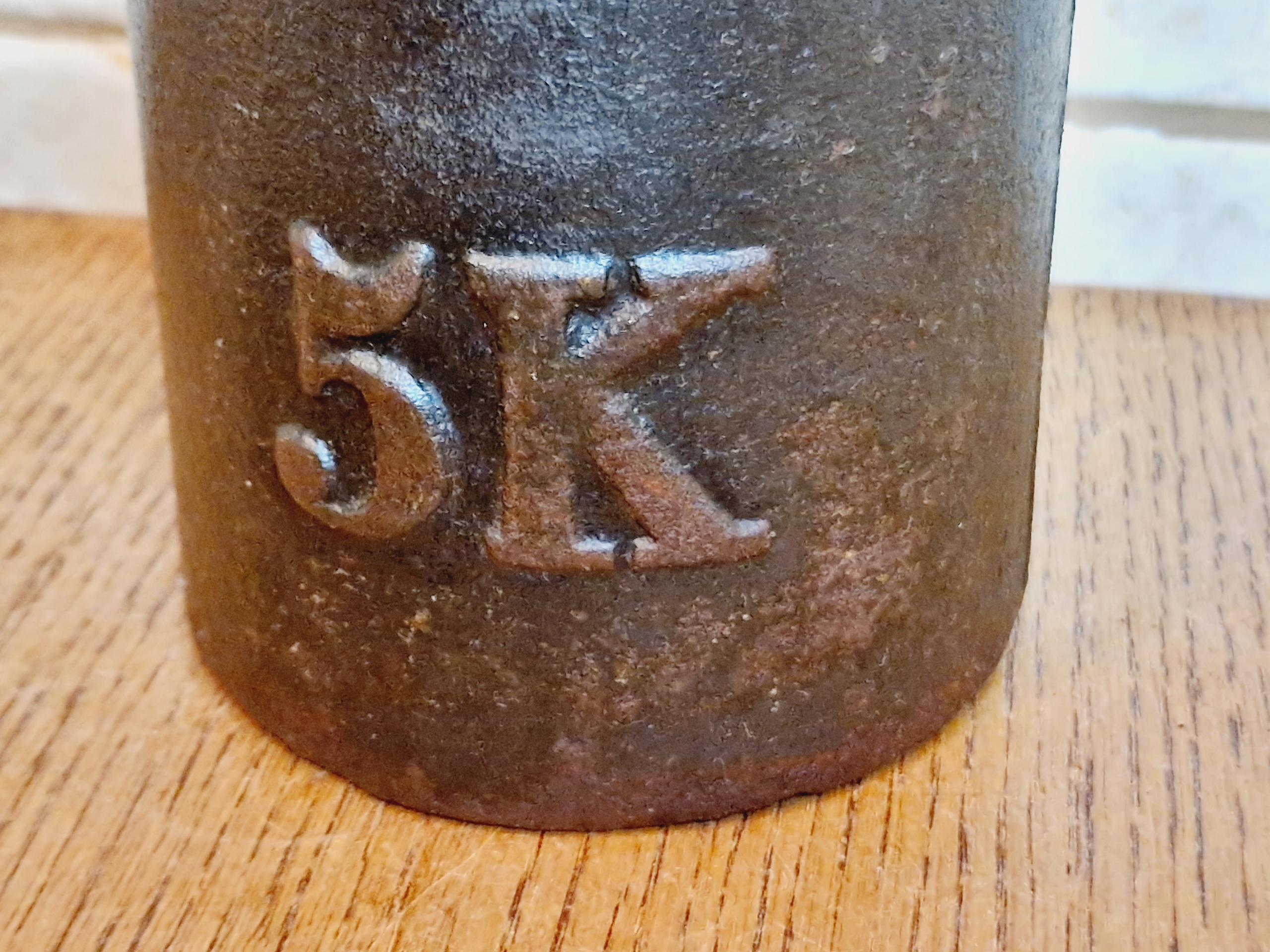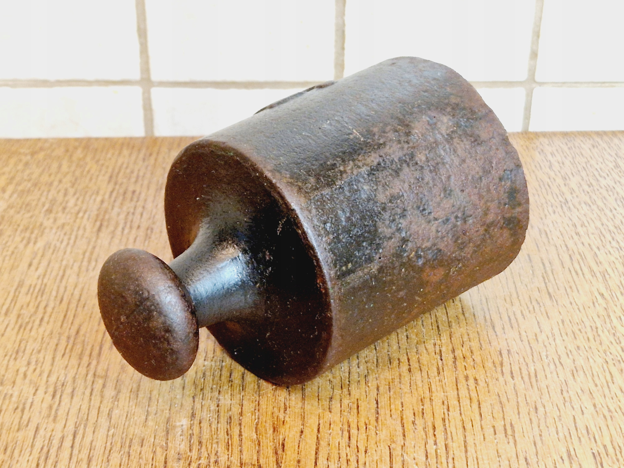 На воротнике гири имеется поверочное гнездо, заполненное свинцовой проверочной вставкой с разборчивыми знаками польской легализации.