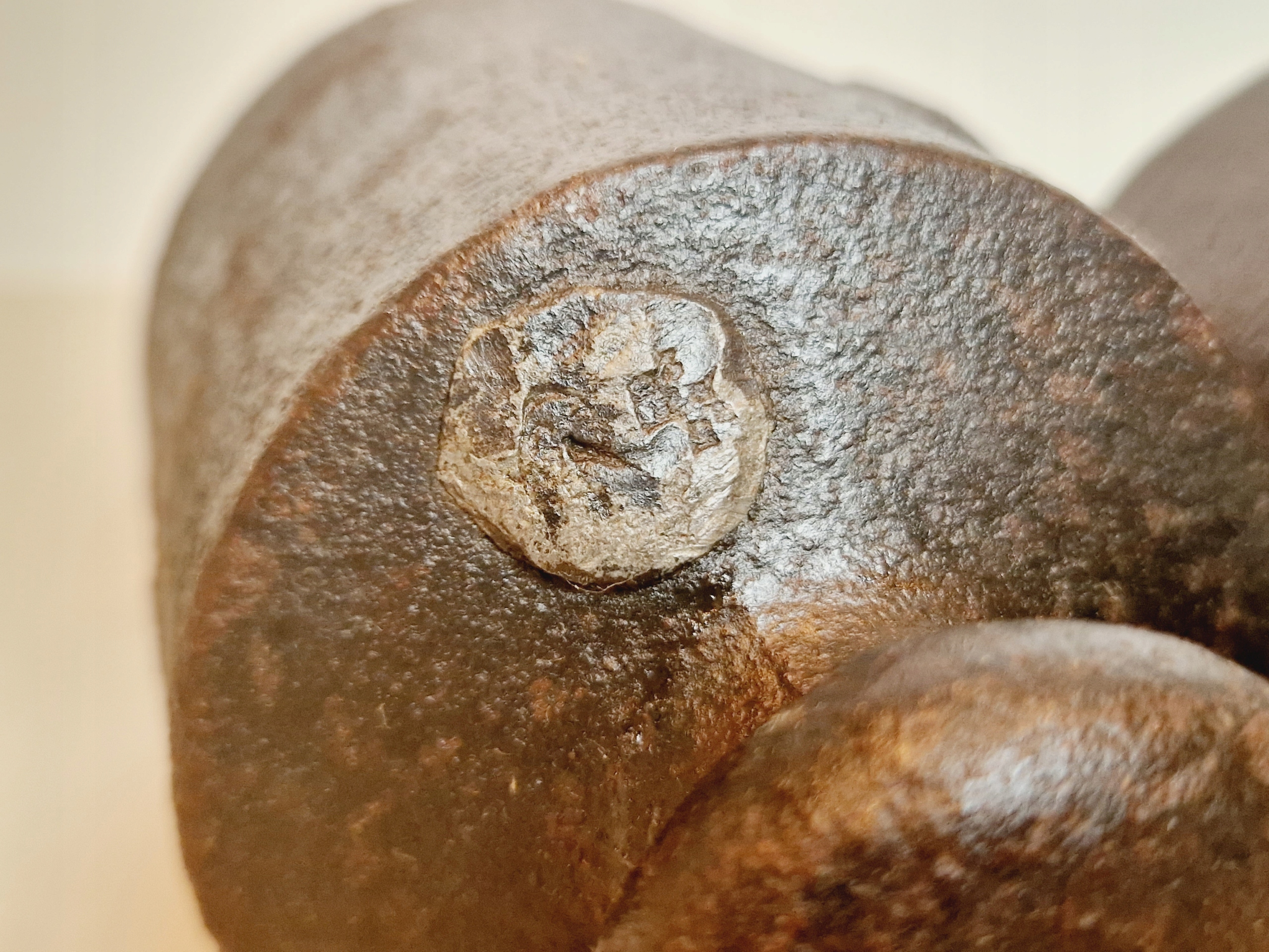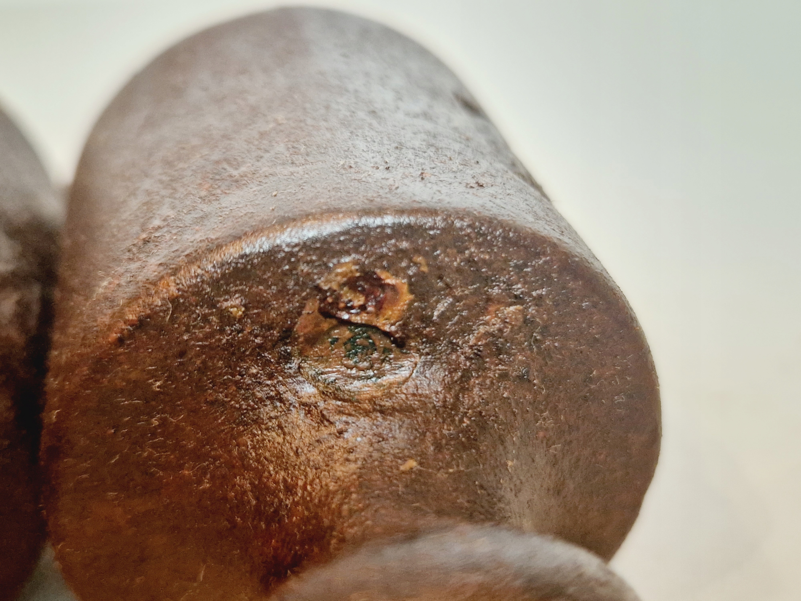 На буртиках гирь - проверочные гнезда, заполненные свинцовыми проверочными вставками.