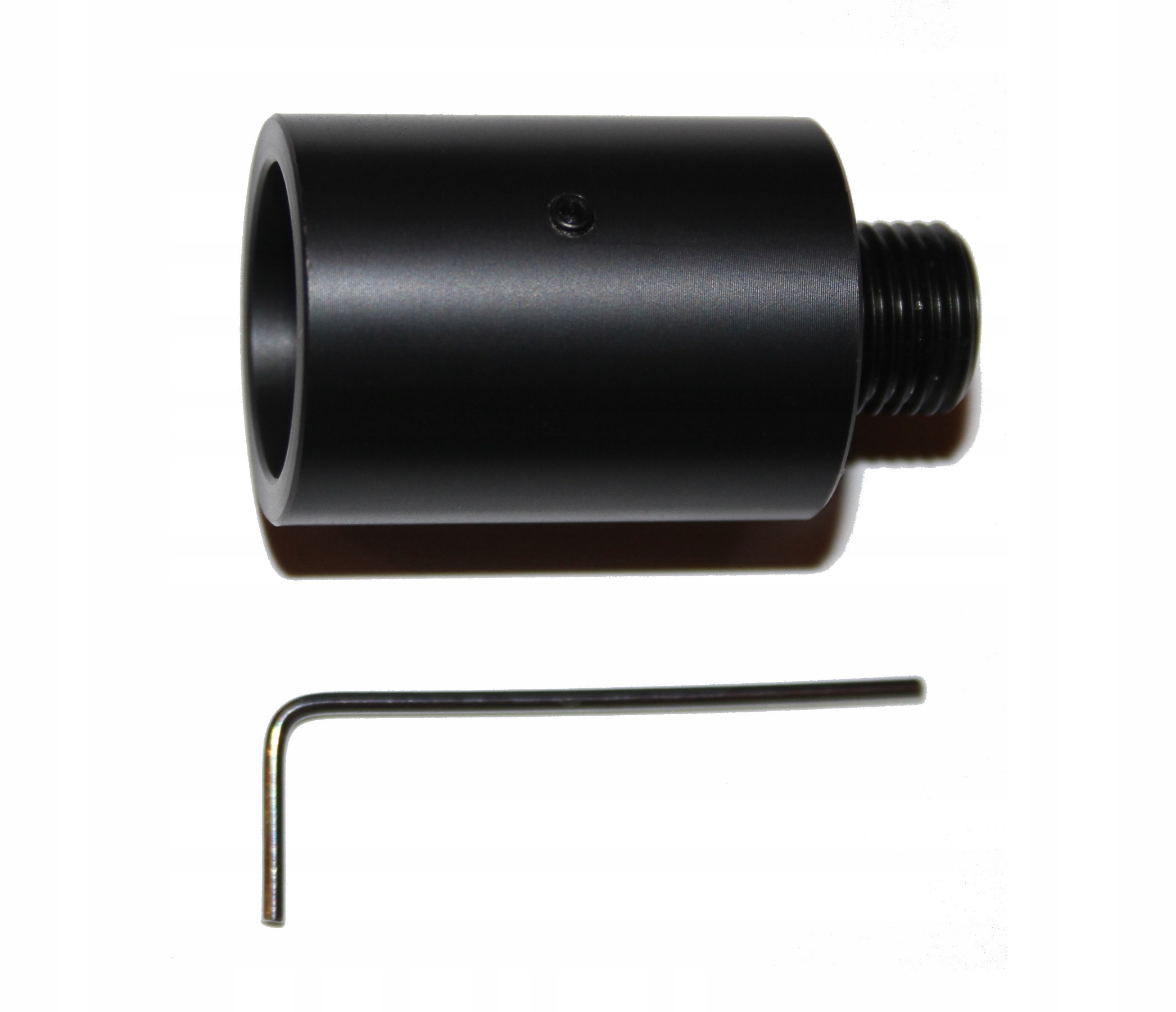 профессиональный адаптер, соединяющий «голый» 19-мм ствол с резьбовым глушителем 1/2-20 UNF + крышка со стальной резьбой, переходник крепится на голый ствол и затягивается прижимным винтом.