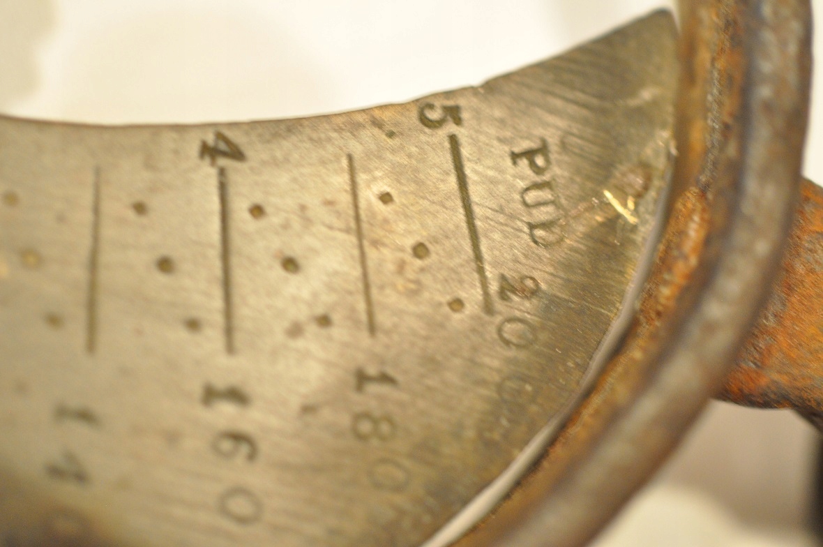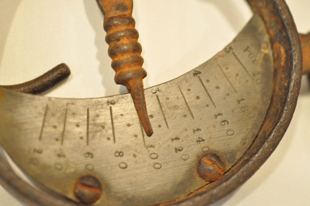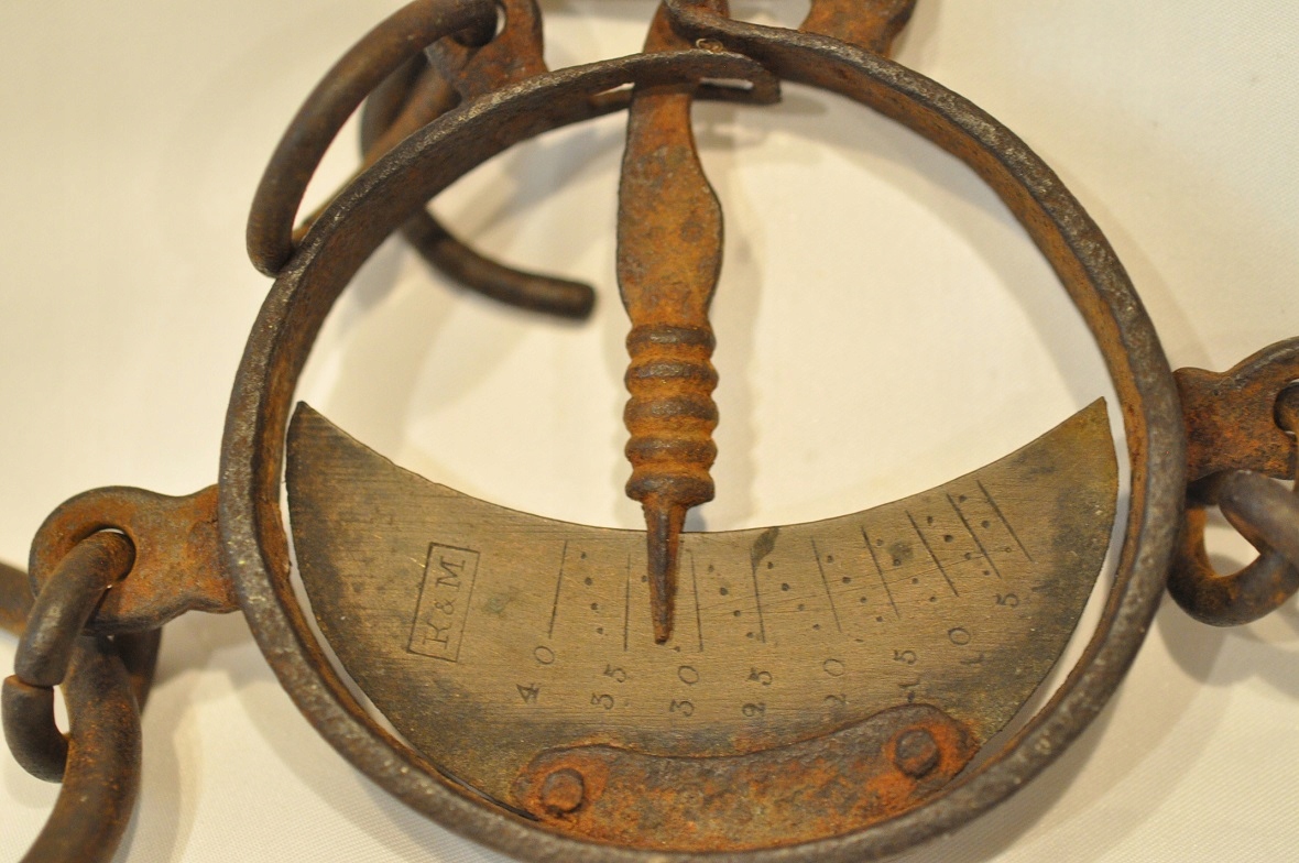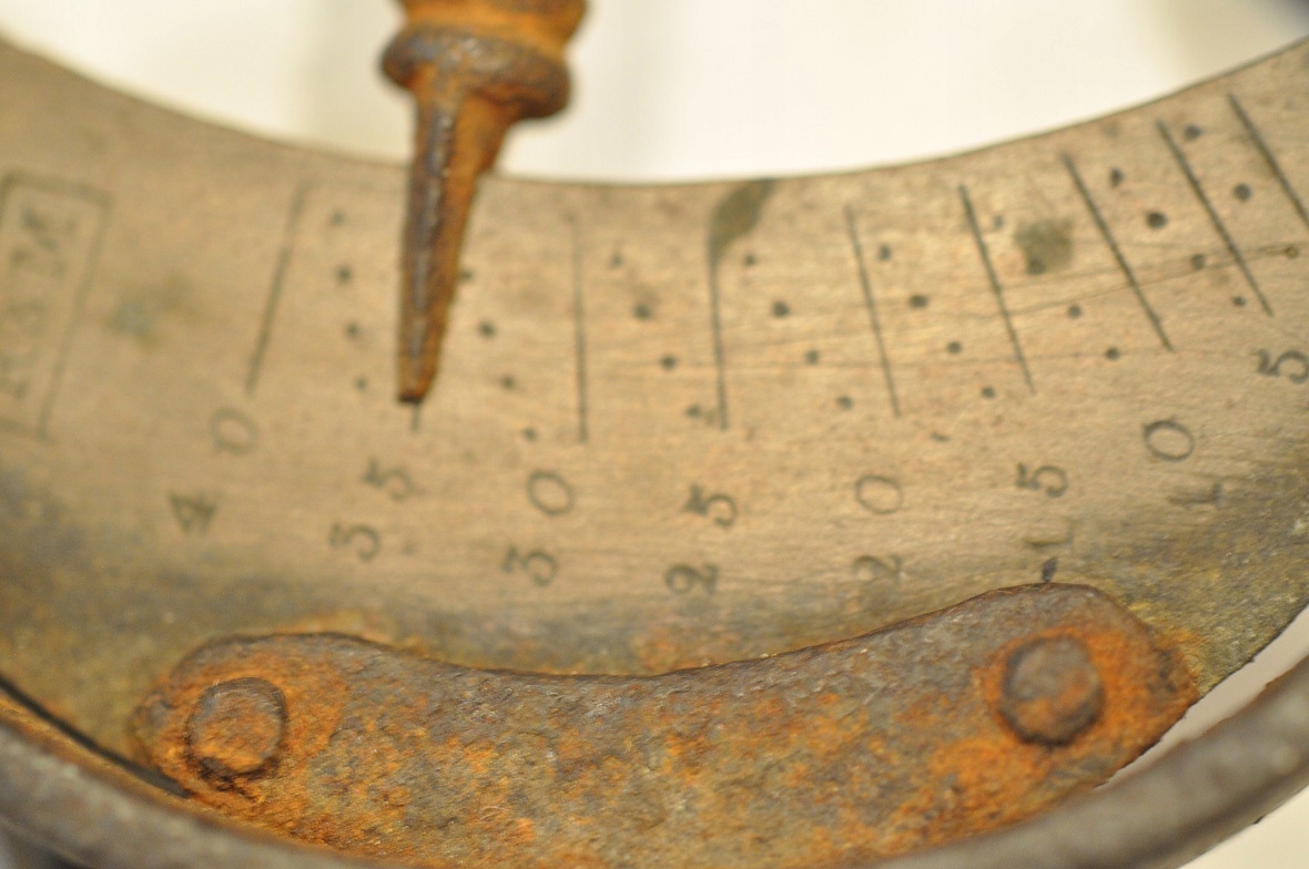 Бронзовая (бронзовая) часть весов в хорошем состоянии – с четко сохранившейся шкалой и клеймом производства.
