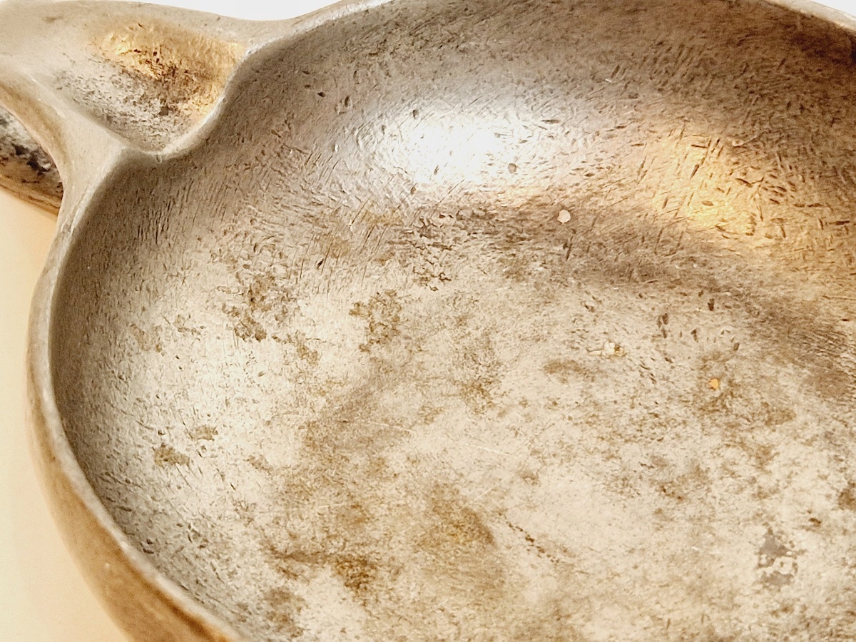 Жестяная банка покрыта старая патина – сосуд недавно не чистился.