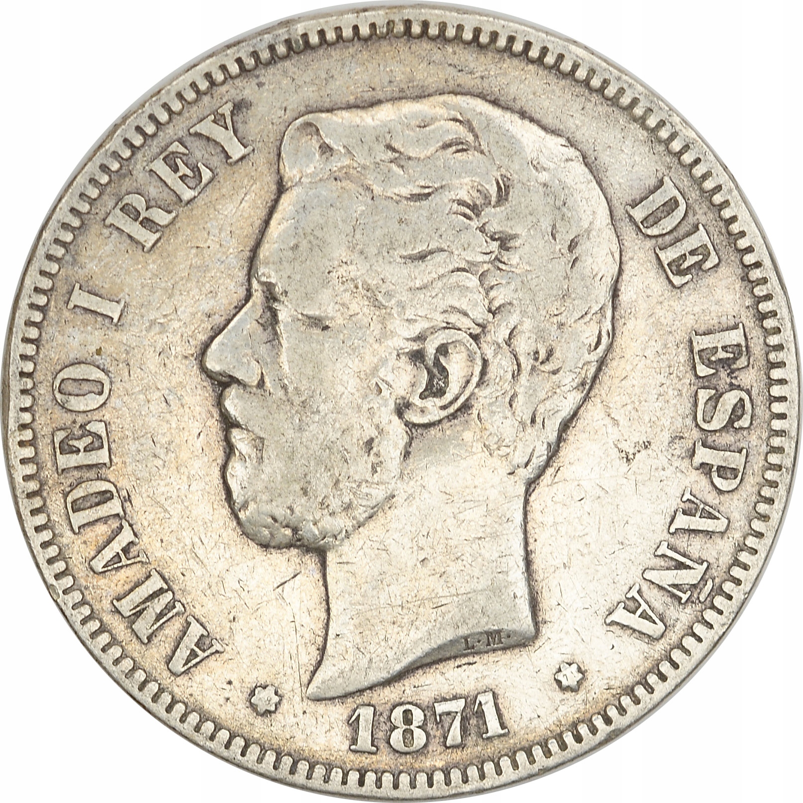 19.db.ІСПАНІЯ, АМАДЕО, 5 ПЕСЕТ 1871 (71) СД М