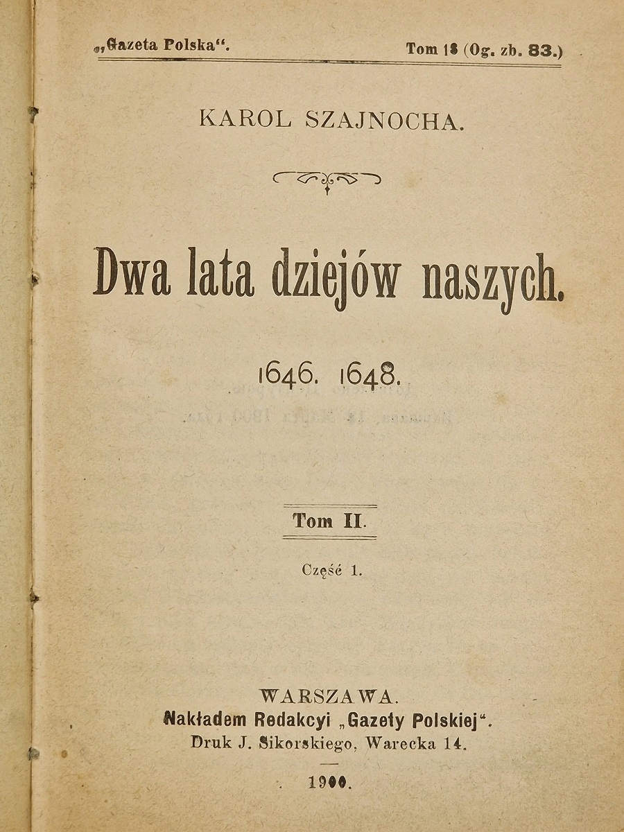 1900 / DWA LATA DZIEJÓW NASZYCH 1646-1648 (t. 1-2) - KAROL SZAJNOCHA /016