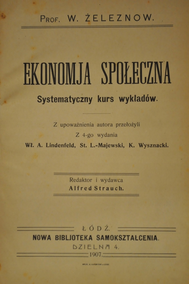 1907 EKONOMJA SPOŁECZNA KURS WYKŁ. W ŻELEZNOW /639