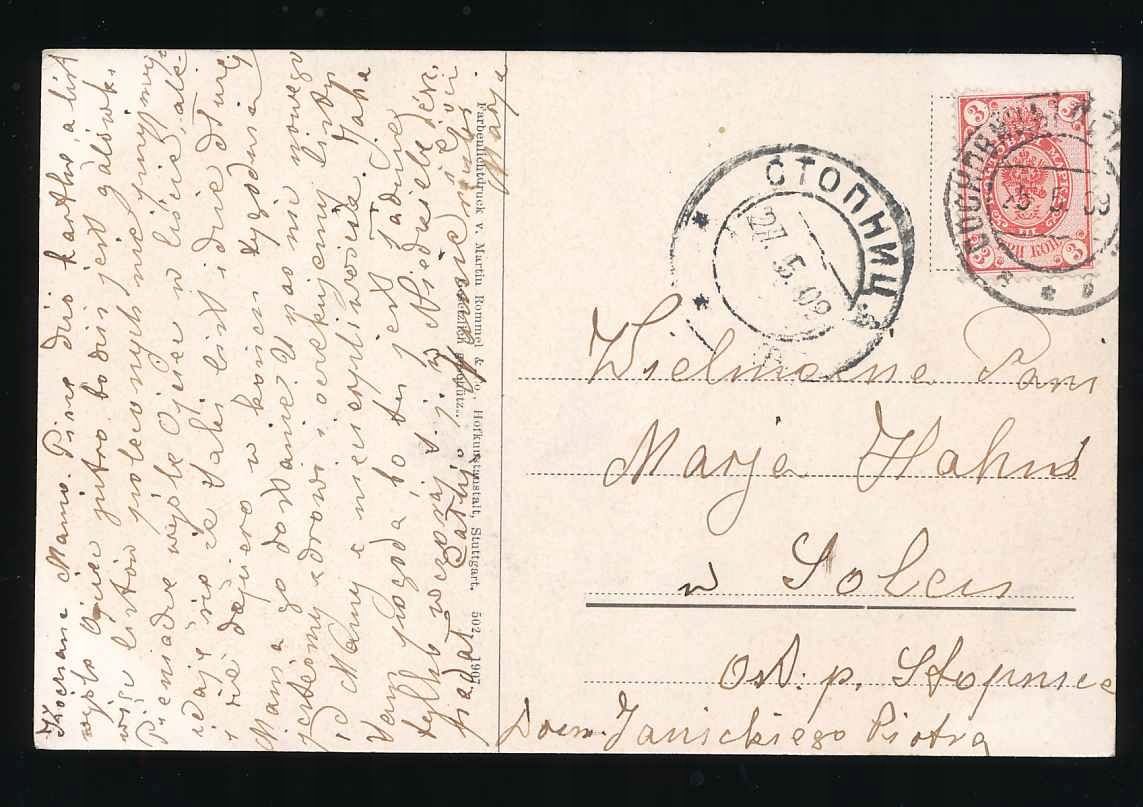 1908 Королевство Польша, Sosnowice Card to Stopnica.