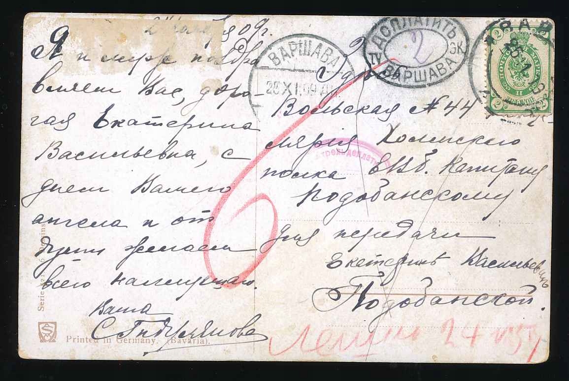 1909 Королевство Польша, Варшавская карта, марка Доплатит Варшава 2 КОП.