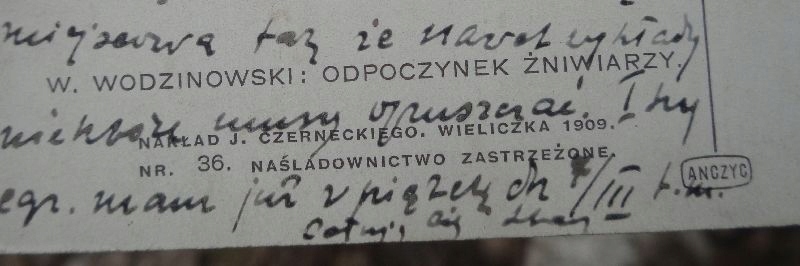 Коллекционная открытка, присланная из Львова в 1911 году. Открытка выпущена в 1909 году в Величке Я. Чернецким. На карточке находится репродукция картины Винсента Водзиновского «Покой Жнеца». Описание карты на польском языке. Состояние карты и все маркировки видно на фотографиях. Всем рекомендую.