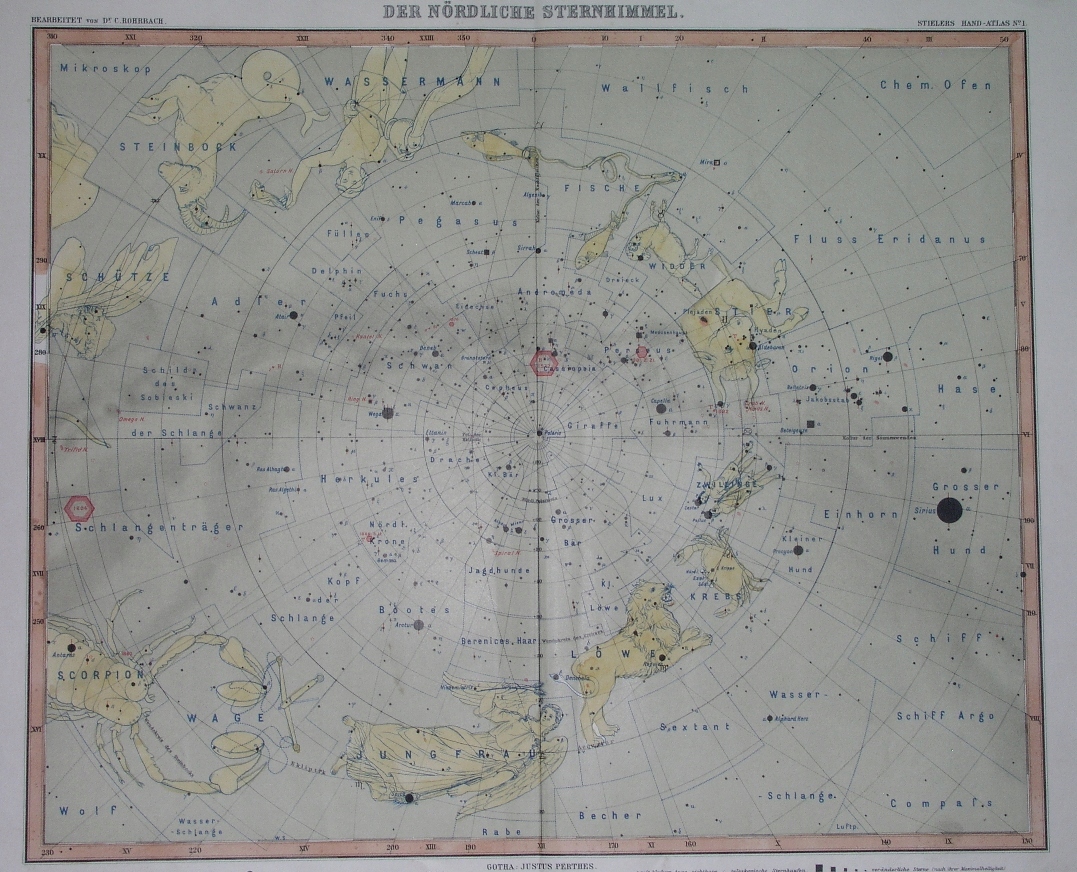 1912 Оригинальная карта Sky Space Zodiak Constellations Constellations